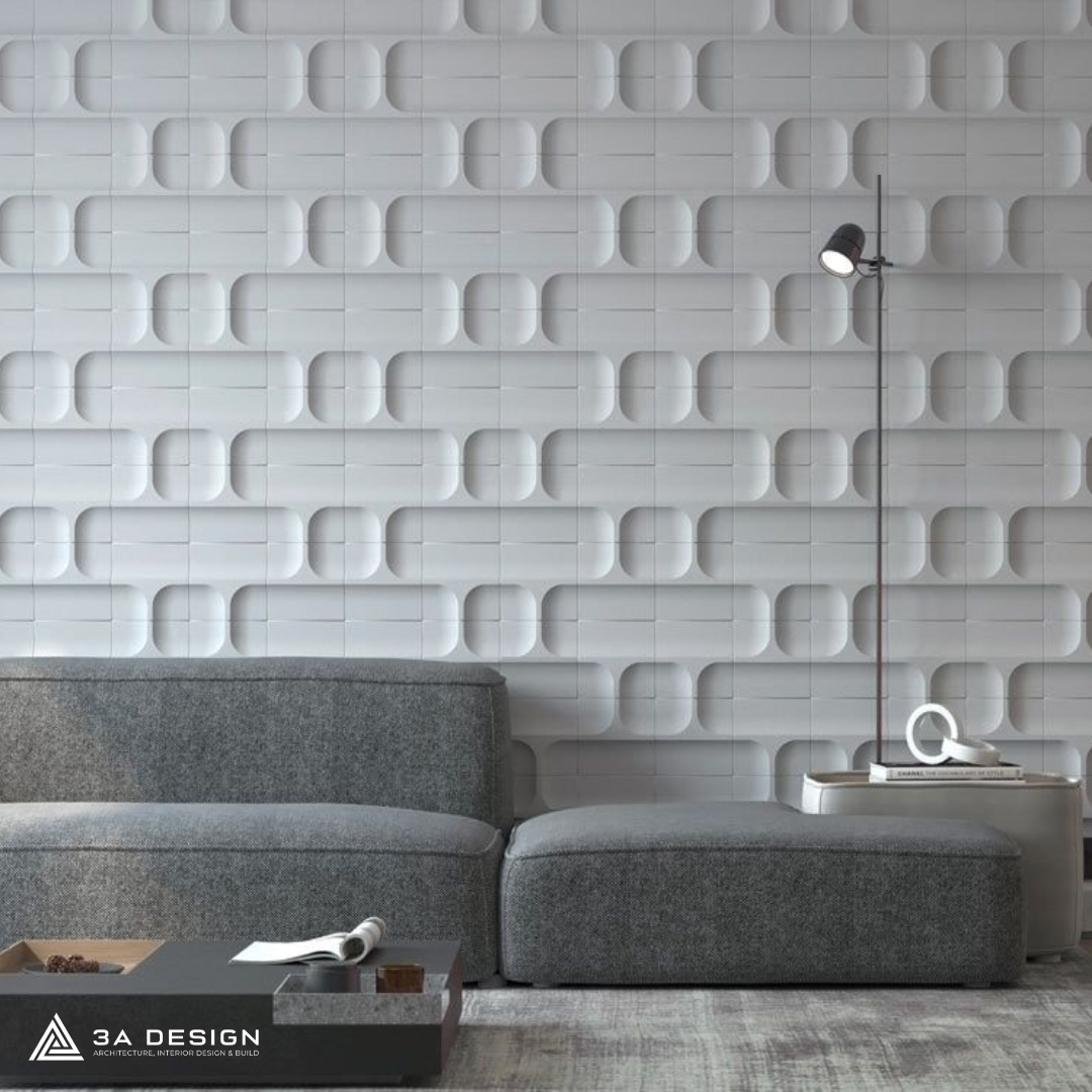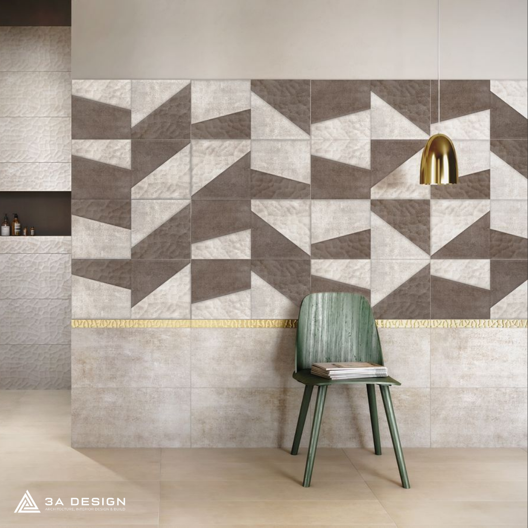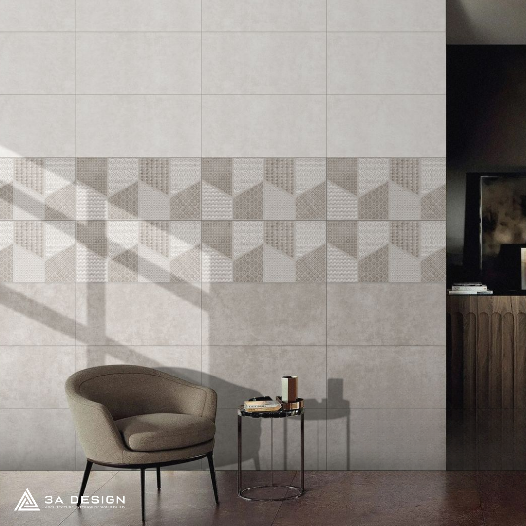 Đây là bước đột phá trong thiết kế bề mặt. Các khối hình học hoặc gợn sóng nổi trên mặt gạch tạo nên sự tương tác với ánh sáng cực tốt. Khi kết hợp với đèn hắt tường, bức tường phòng khách sẽ trở nên lung linh và có chiều sâu kỳ ảo.