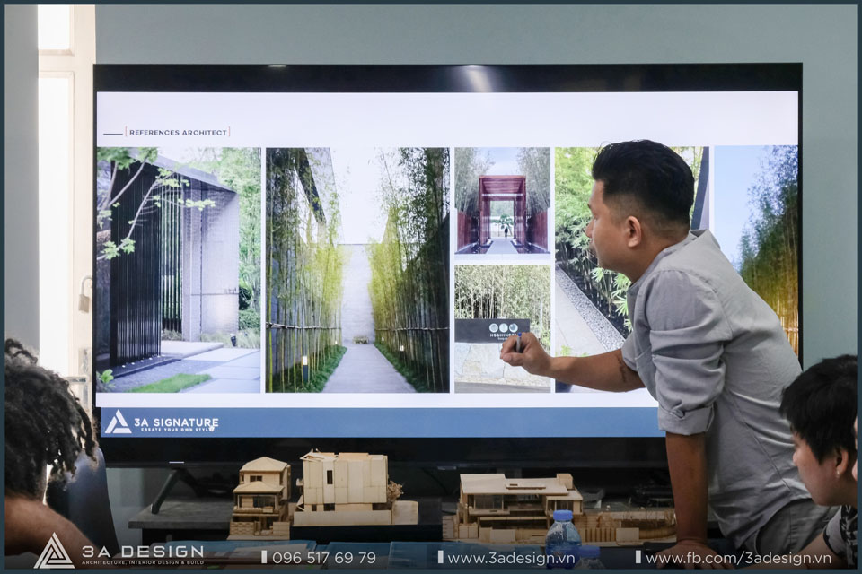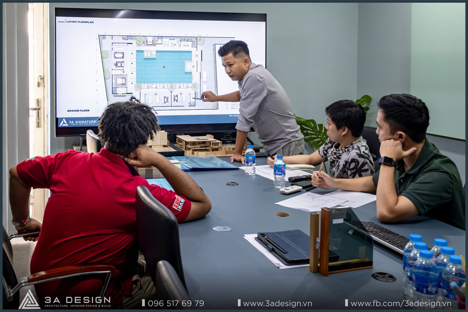 Tại buổi họp, các KTS của 3A Design đã trình bày về ý tưởng thiết kế độc đáo và đầy tinh tế cho công trình Private Villa, đồng thời thấu hiểu sâu về bản chất của một biệt thự riêng tư nhằm thể hiện đúng mong muốn mà gia chủ muốn hướng đến.