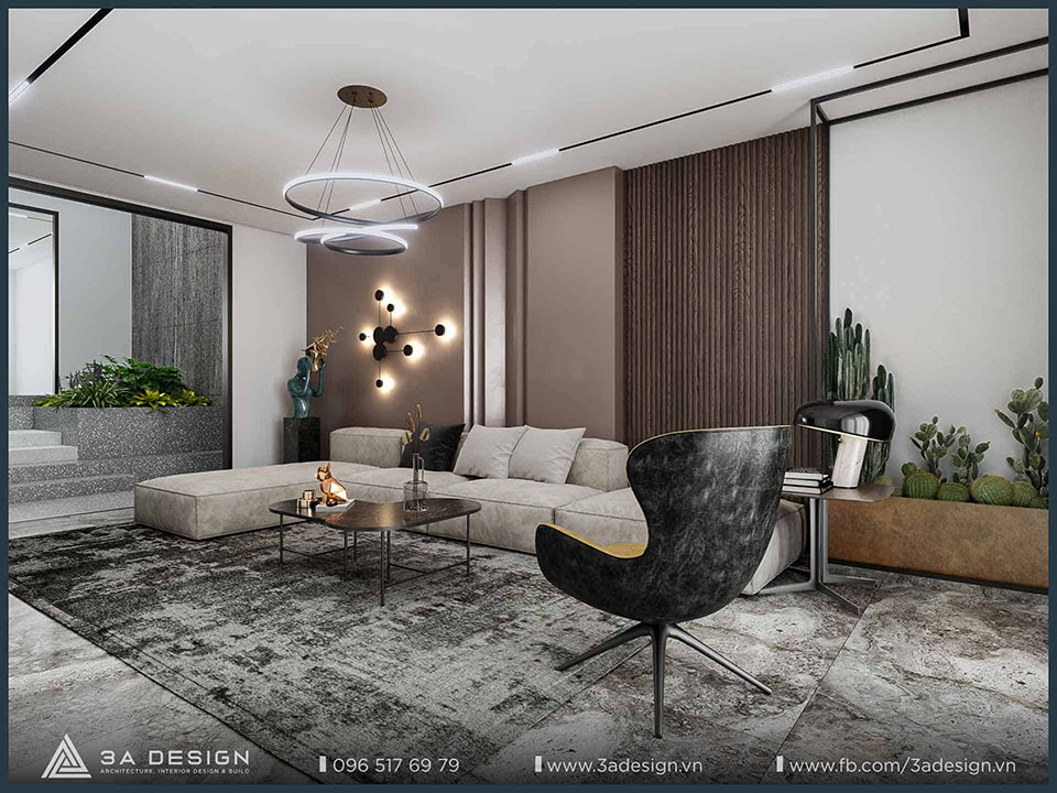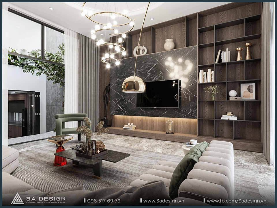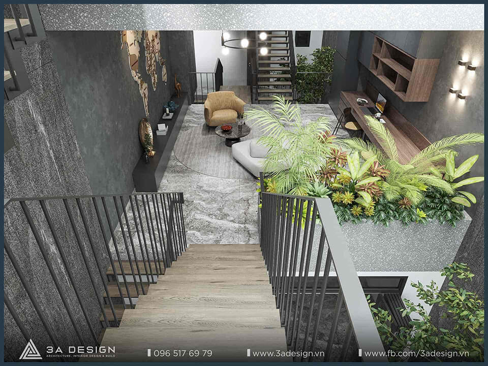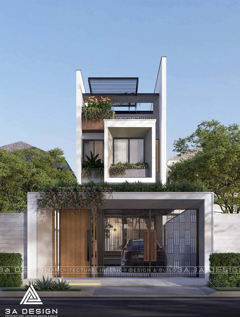 Built on an expansive plot measuring 5.5m x 64.5m, the architects skillfully dedicated the majority of the grounds to communal spaces – areas for relaxation and family gatherings. The entire residence features a unique architectural design with a split-level layout, combined with vast glass windows. This approach not only captures maximum natural light but also lends the home a distinctive and exclusive character. With just a gentle draw of the curtains, you can leave the hustle and bustle of the noisy city behind and immerse yourself in a peaceful sanctuary for the soul.