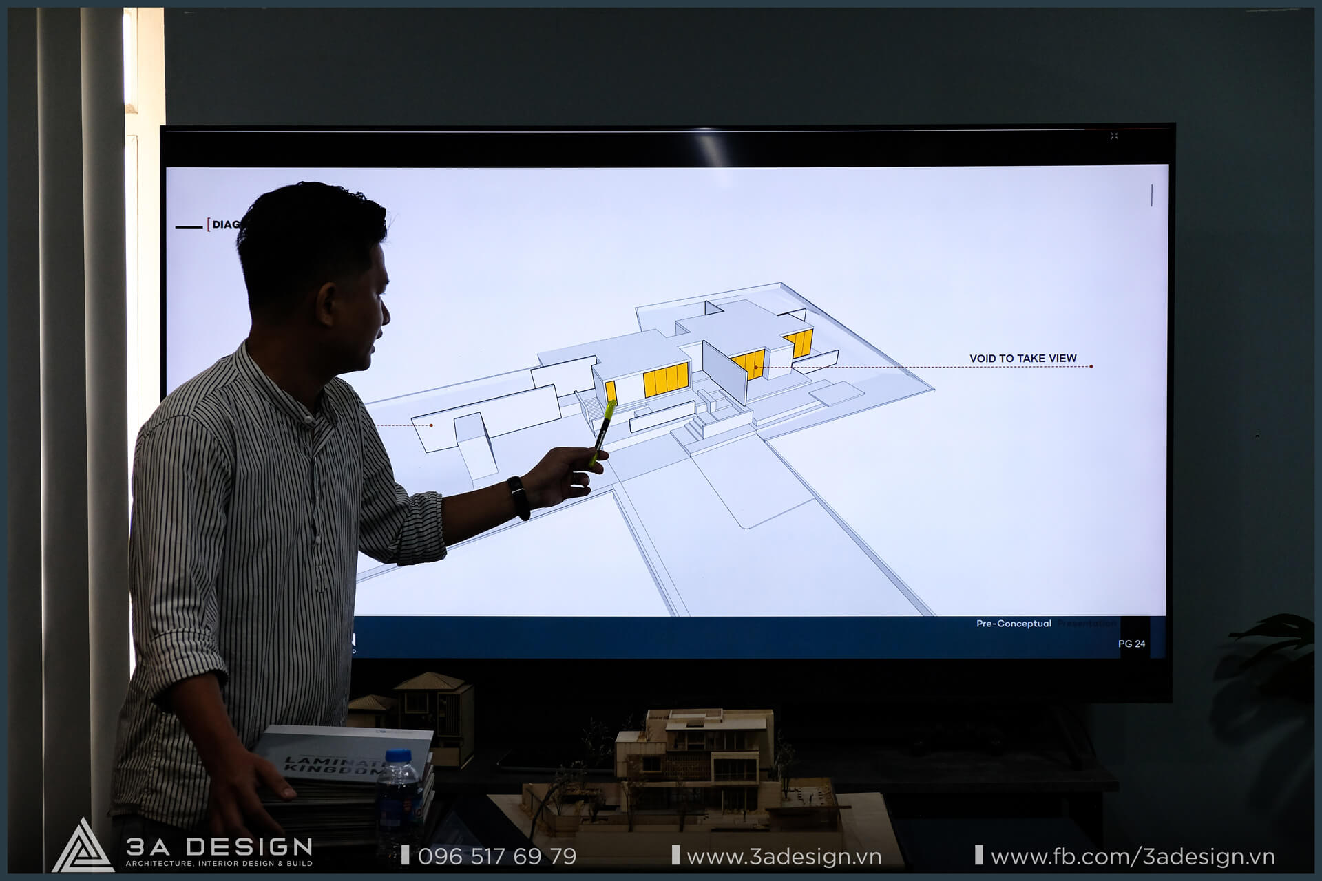 The architectural concept meeting is a crucial gathering between 3A Design architects and the homeowner, aimed at discussing, sharing, and developing ideas for the PH Villa project.