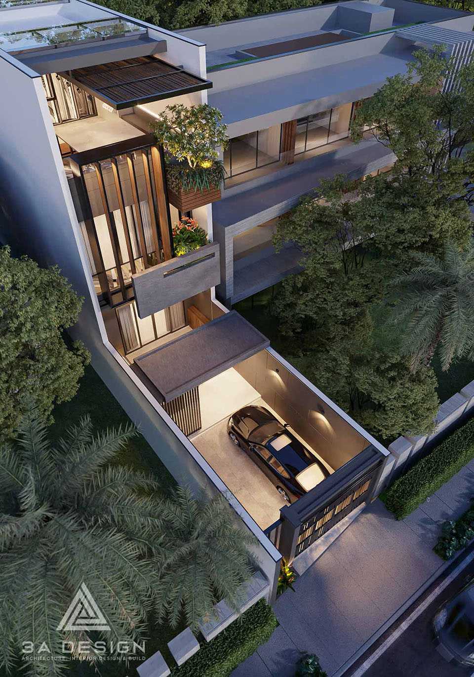 Inside, the TT-House interiors are designed with modern refinement, featuring a neutral color palette accentuated by wood tones. This combination creates a living space that is both expansive and inherently warm for the family. This harmonious blend ensures the home is fully equipped with amenities and stands as an ideal sanctuary.