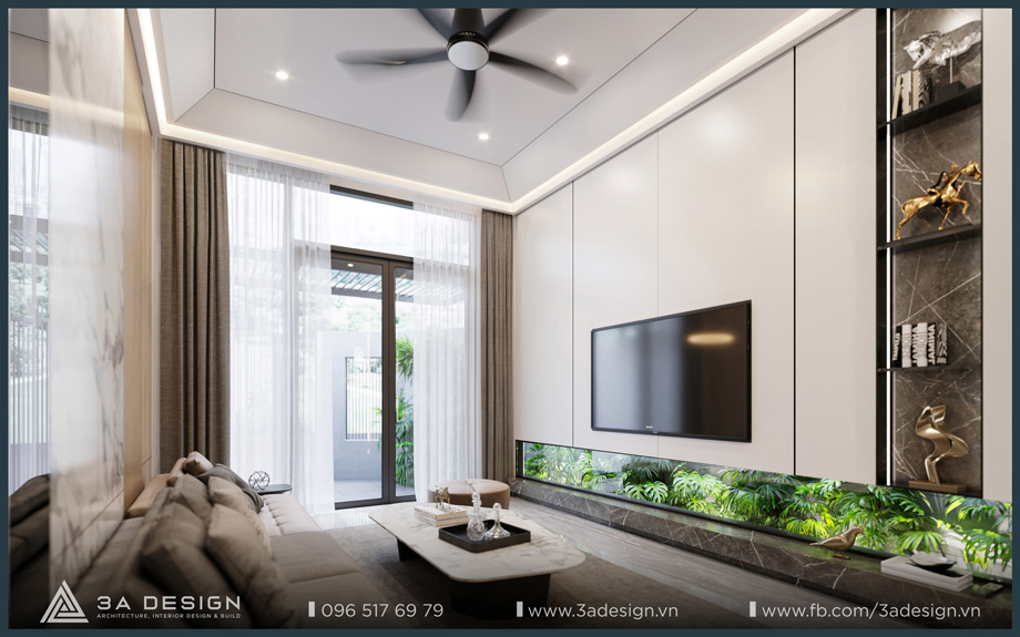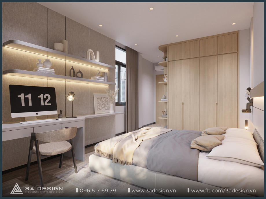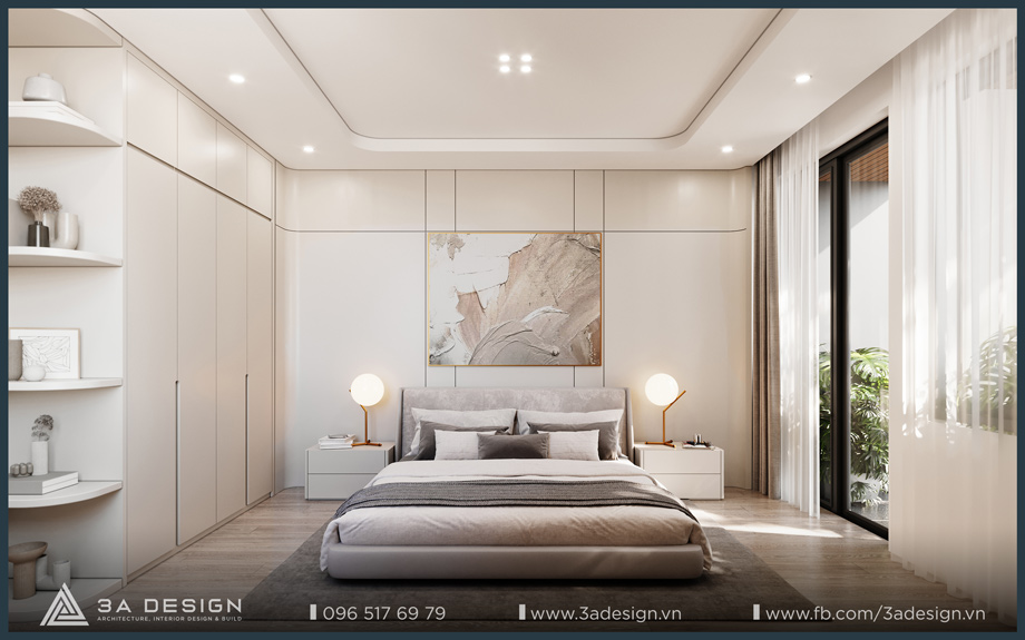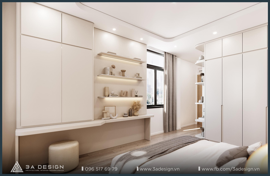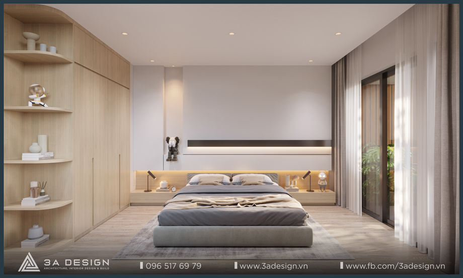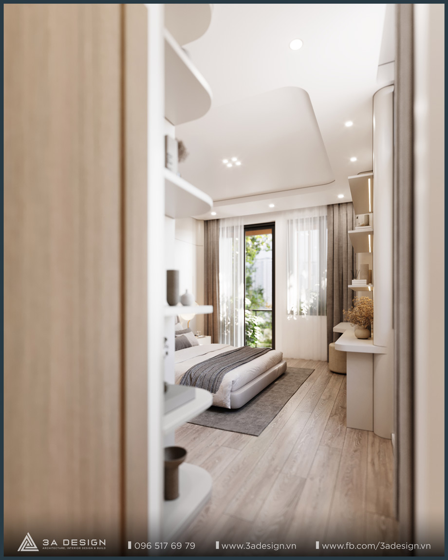 The Master Bedroom of S House is designed with a light beige palette, featuring delicate, artistic curves on the headboard wall, which creates a unique and luxurious aesthetic. Furthermore, the arrangement of greenery systems around the house is also a crucial factor that 3A Design’s architects especially focused on. Having ample green space ensures the family’s living environment is always cool and fresh.