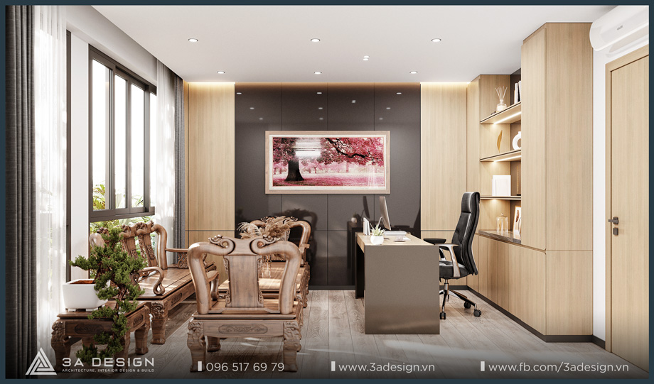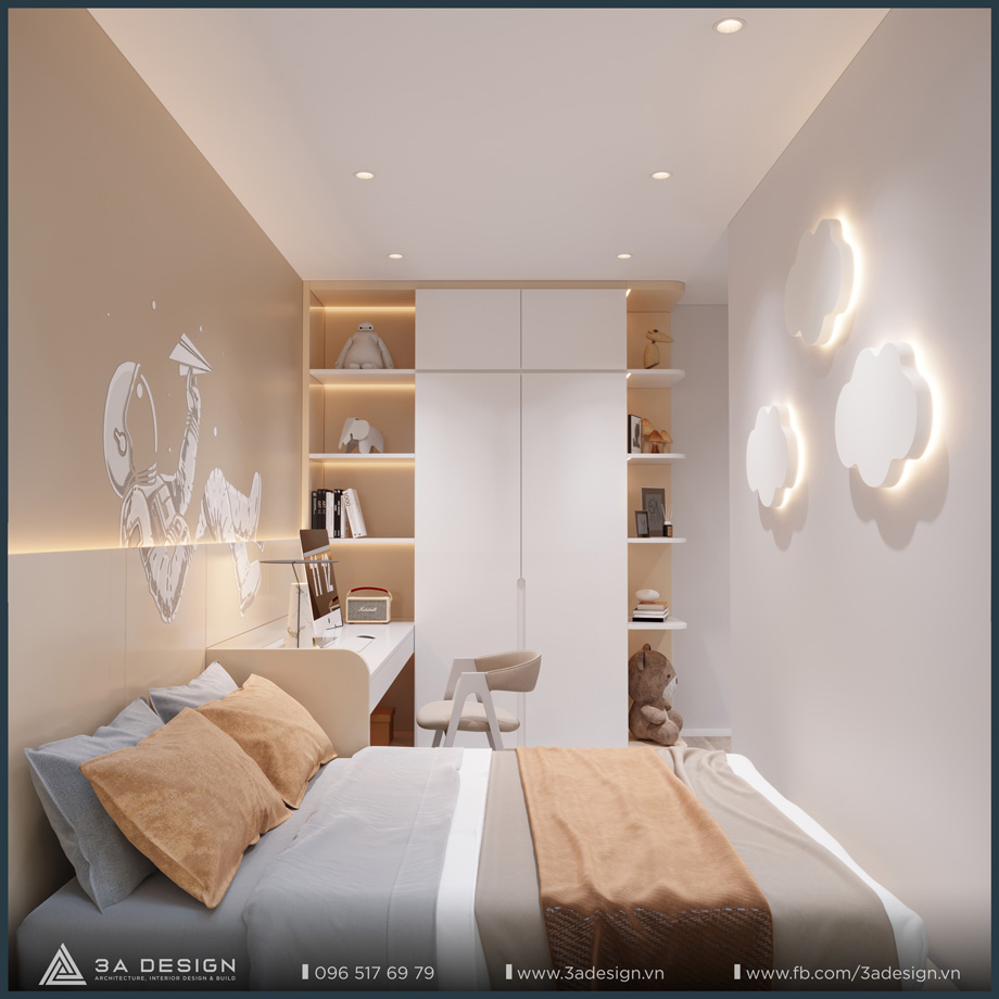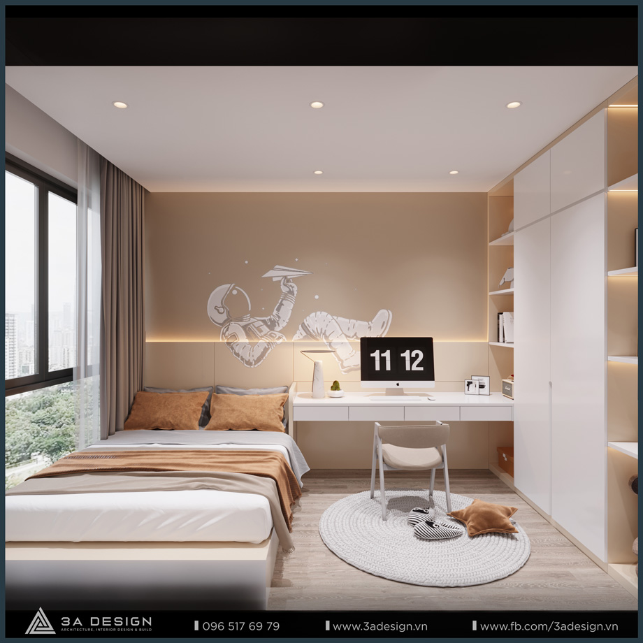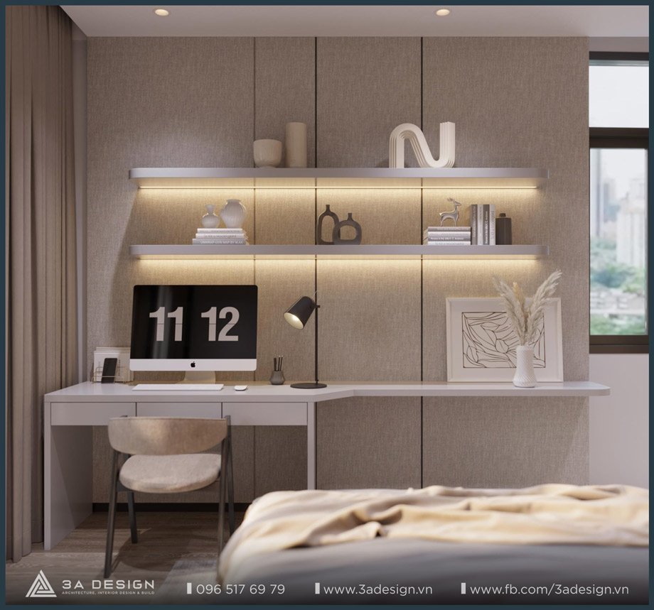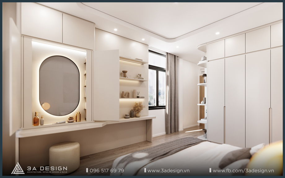 The Master Bedroom of S House is designed with a light beige palette, featuring delicate, artistic curves on the headboard wall, which creates a unique and luxurious aesthetic. Furthermore, the arrangement of greenery systems around the house is also a crucial factor that 3A Design’s architects especially focused on. Having ample green space ensures the family’s living environment is always cool and fresh.