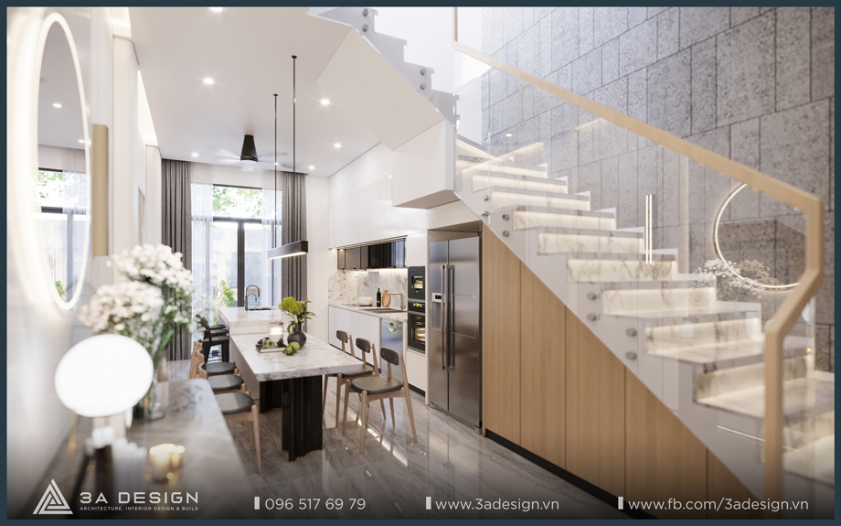 With a scale of one ground floor, two upper floors, and one attic (1 trệt, 2 lầu, 1 tum), the S House was skillfully designed by 3A Design’s architects, creating a modern and highly refined living space with square architectural blocks integrated smoothly. The S House is equipped with full amenities by the architects, resulting in a convenient and comfortable living space that serves the family’s daily needs.