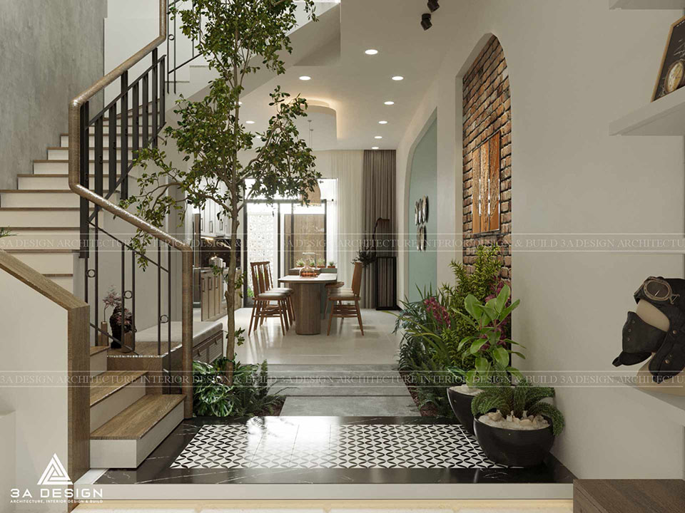 The Garden House townhouse project is a haven that embodies modern, gentle beauty, drawing from the serenity of lush greenery and the soft hues of pastel interiors. This combination creates a visually captivating effect, allowing the homeowners to fully unwind after a demanding workday.