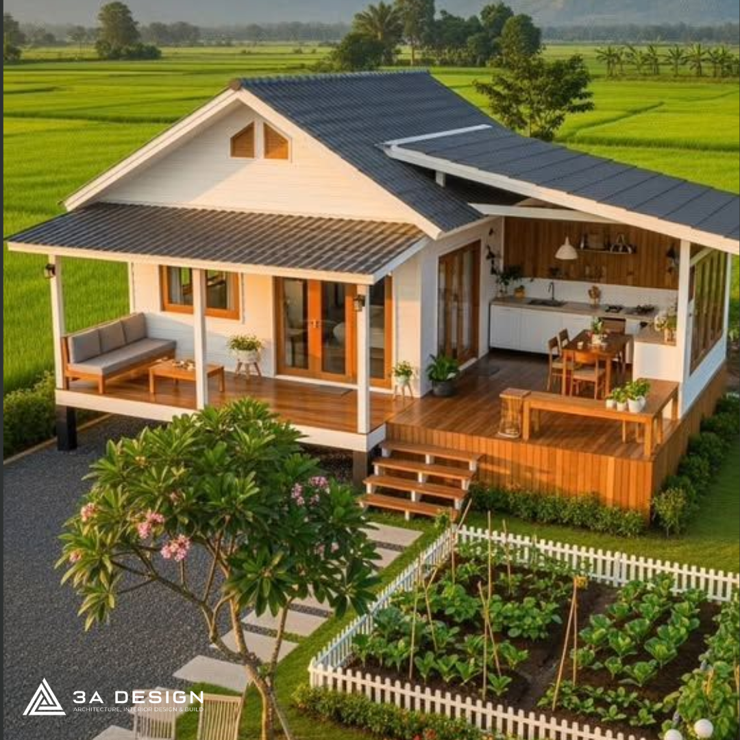 Đây là lựa chọn hàng đầu cho những ai yêu thích sự tối giản. Với thiết kế mở, tận dụng tối đa ánh sáng tự nhiên, nhà vườn cấp 4 vừa tiết kiệm chi phí xây dựng, vừa mang lại cảm giác rộng rãi, thoáng đãng.