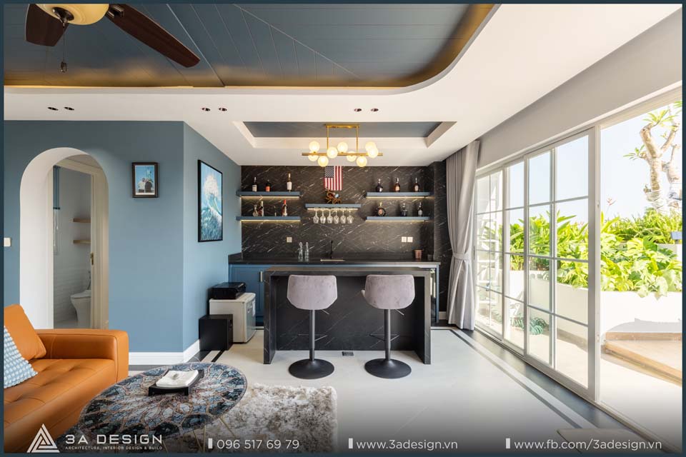 Phòng giải trí của T Villa được trang bị một quầy bar để gia đình có thể thư giãn và tận hưởng những khoảnh khắc thú vị cùng nhau. Với sự kết hợp giữa các yếu tố trang trí và nội thất, phòng giải trí mang đến cho không gian sống của T Villa một vẻ đẹp đầy tính thẩm mỹ và sự gần gũi với thiên nhiên. Bạn có thể tổ chức các buổi tiệc tùng hoặc thưởng thức những ly cocktail trong không gian sang trọng và ấm cúng của phòng giải trí này.