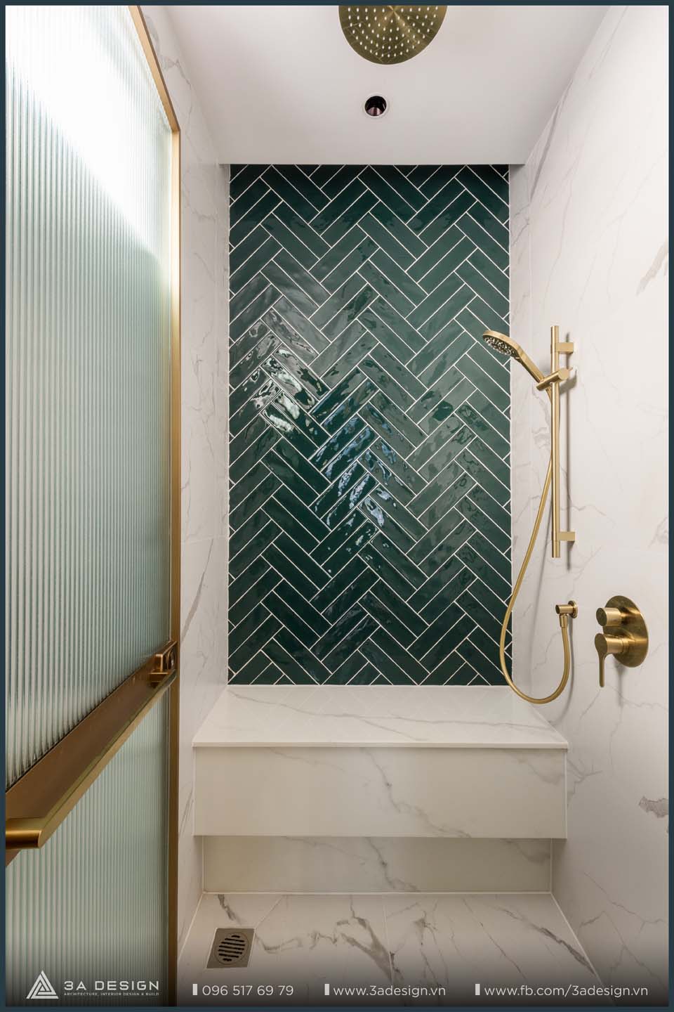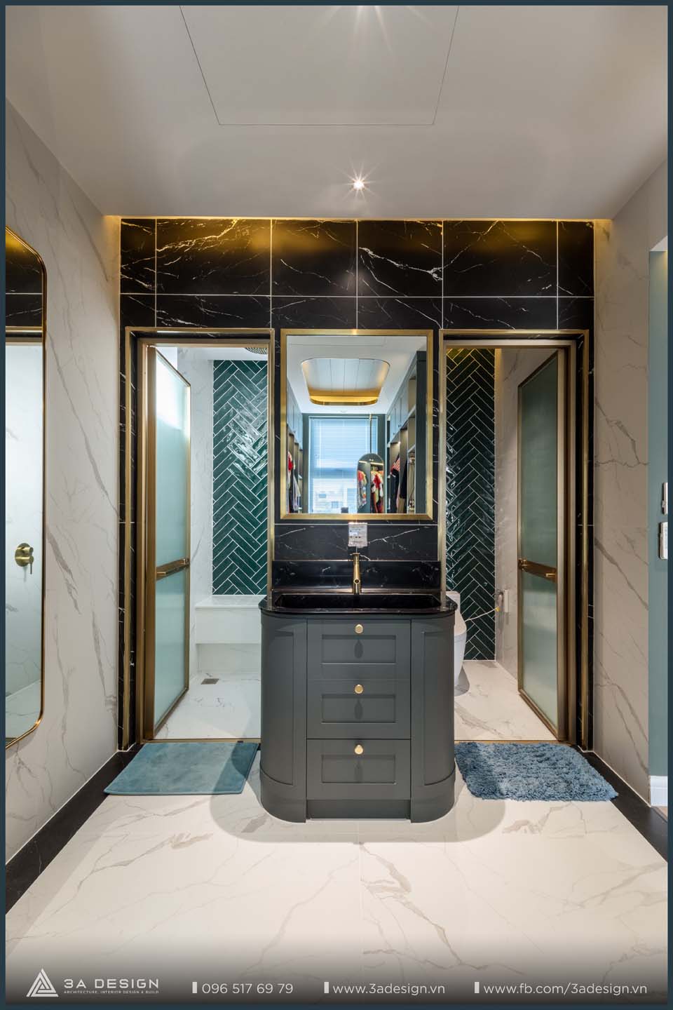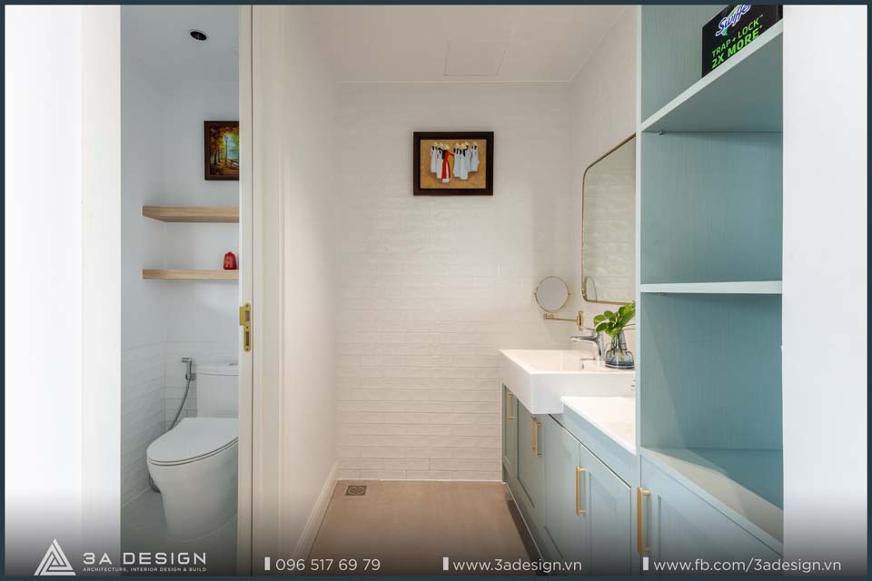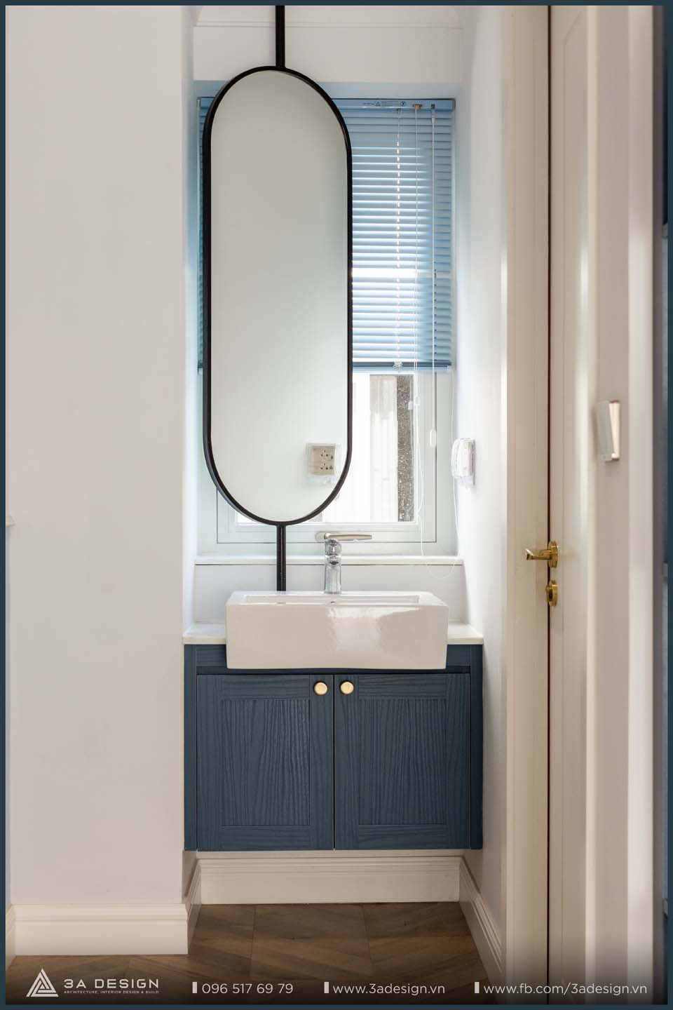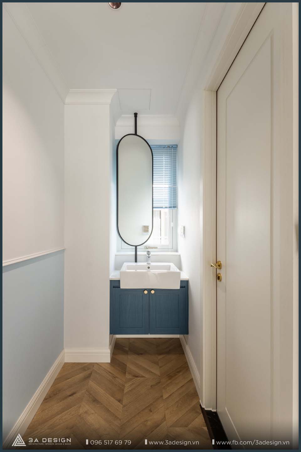 Khu vực phòng tắm và nhà vệ sinh của T Villa được thiết kế với tone màu xanh biển và sử dụng má marble vân mây để tạo nên vẻ đẹp tự nhiên và gần gũi với thiên nhiên. Điều này giúp tạo nên một không gian tắm rất thư giãn và thoải mái cho gia đình.