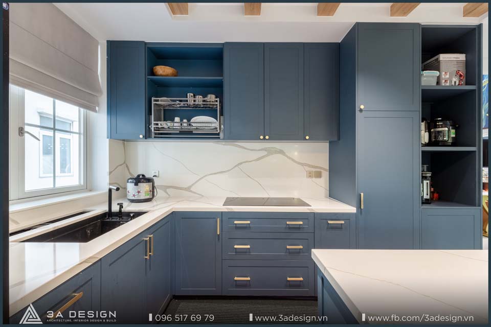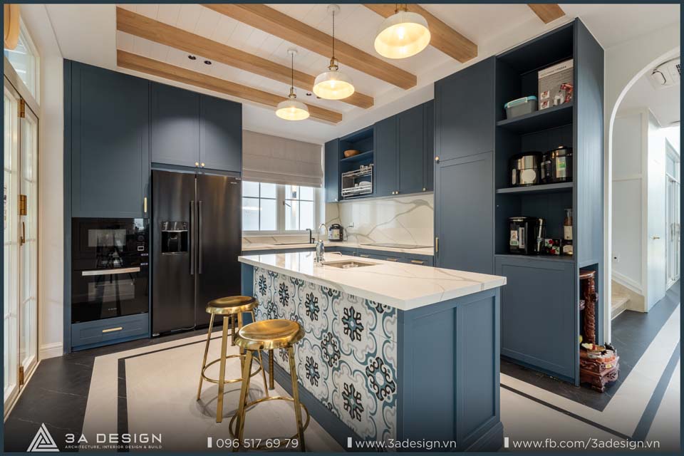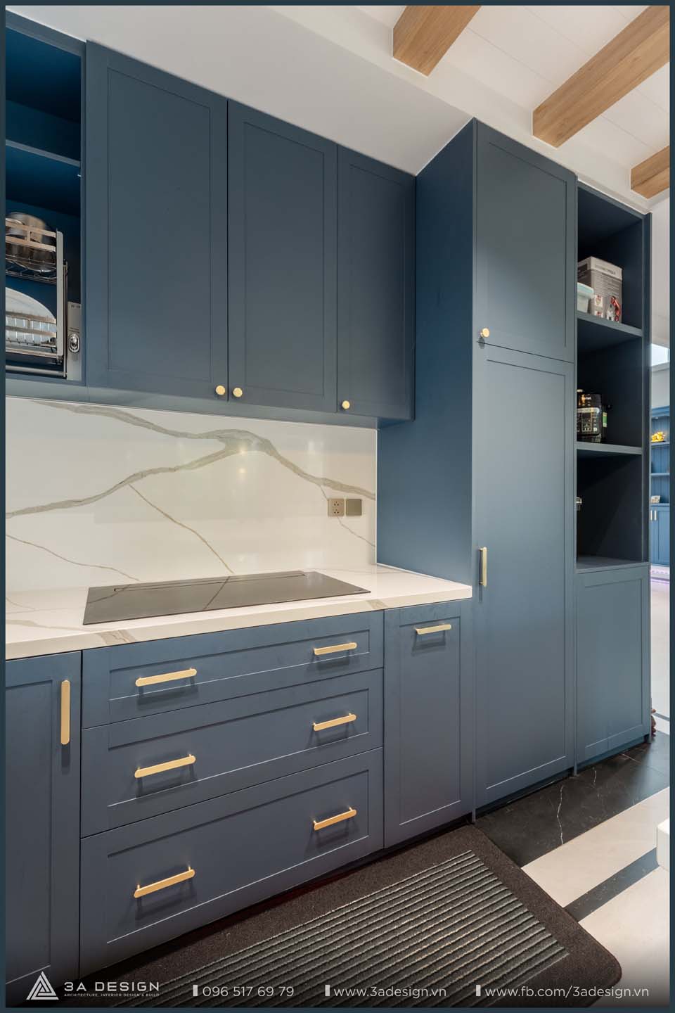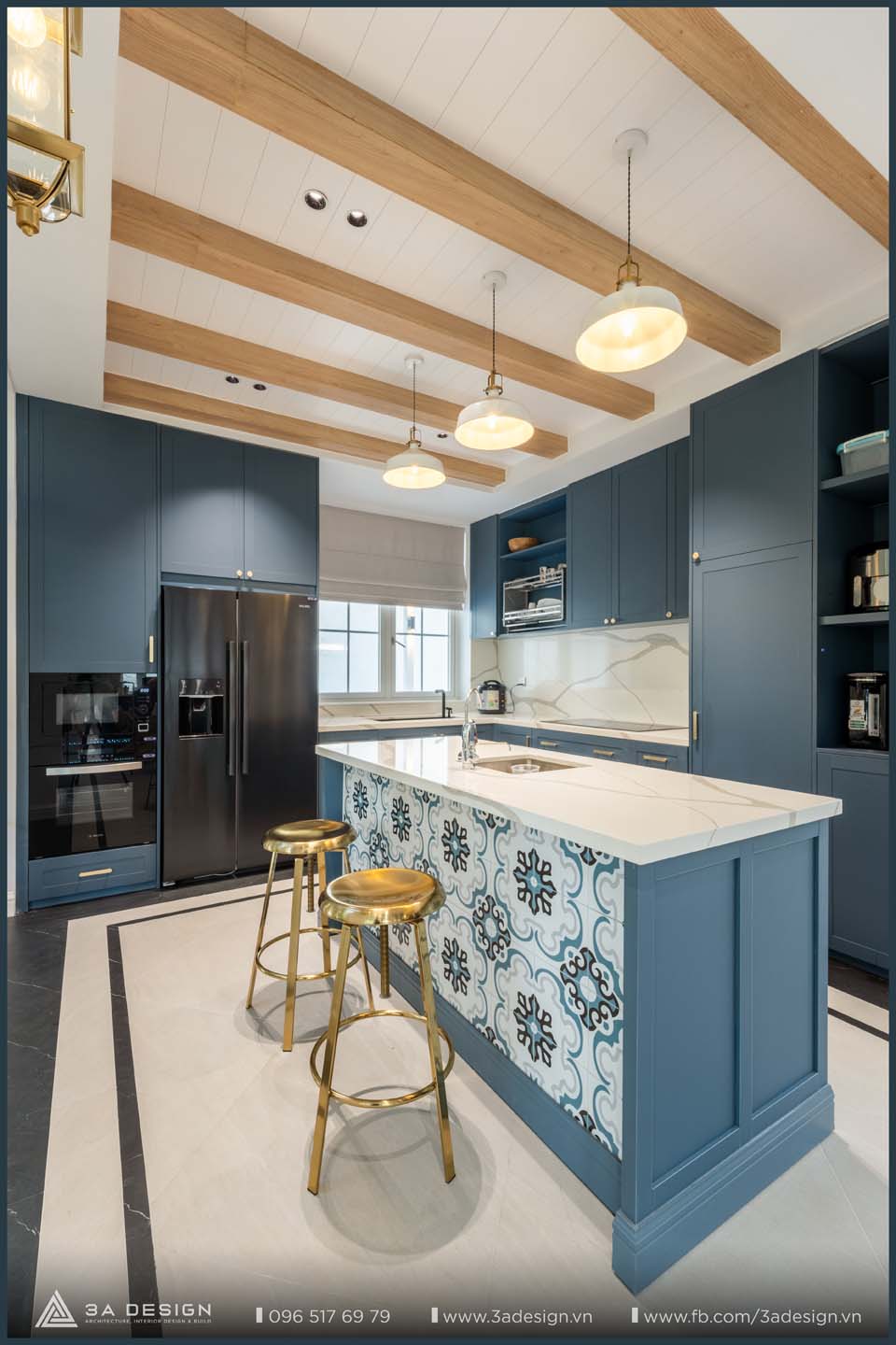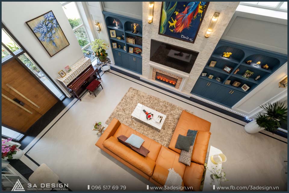 Phong cách nội thất của biệt thự T Villa được lấy cảm hứng từ vùng địa trung hải, nơi có những cảnh quan tuyệt đẹp và sự kết hợp giữa màu xanh coban đậm và màu trắng kem tạo nên một không gian đầy ấn tượng. Màu xanh du dương của biển cả được sử dụng khéo léo trong từng không gian, tạo nên sự hài hòa và tươi mát cho căn nhà. Đặc biệt, màu xanh lịch lãm là trung tâm của những góc nhìn, mang lại cảm giác thư thái và thanh lịch cho người sống trong căn nhà.