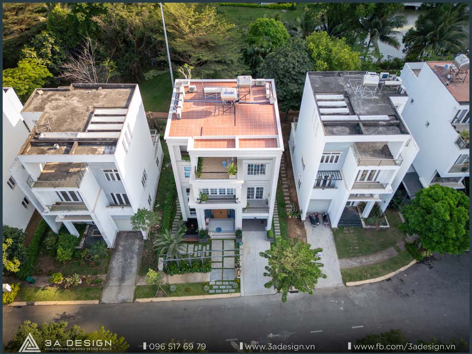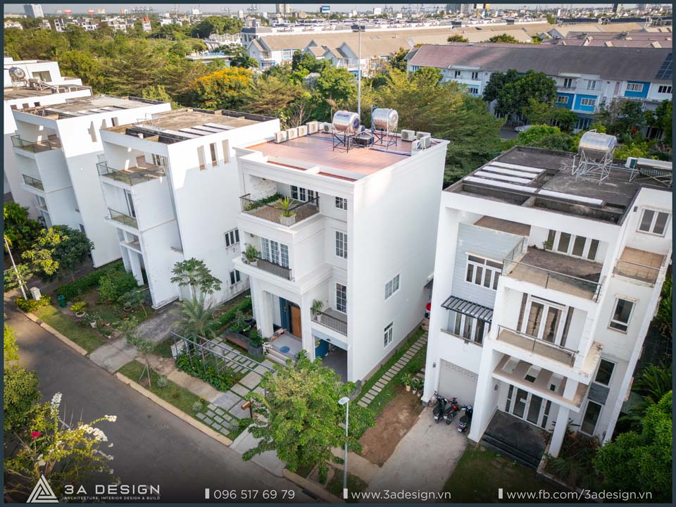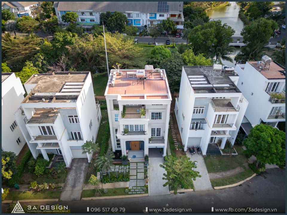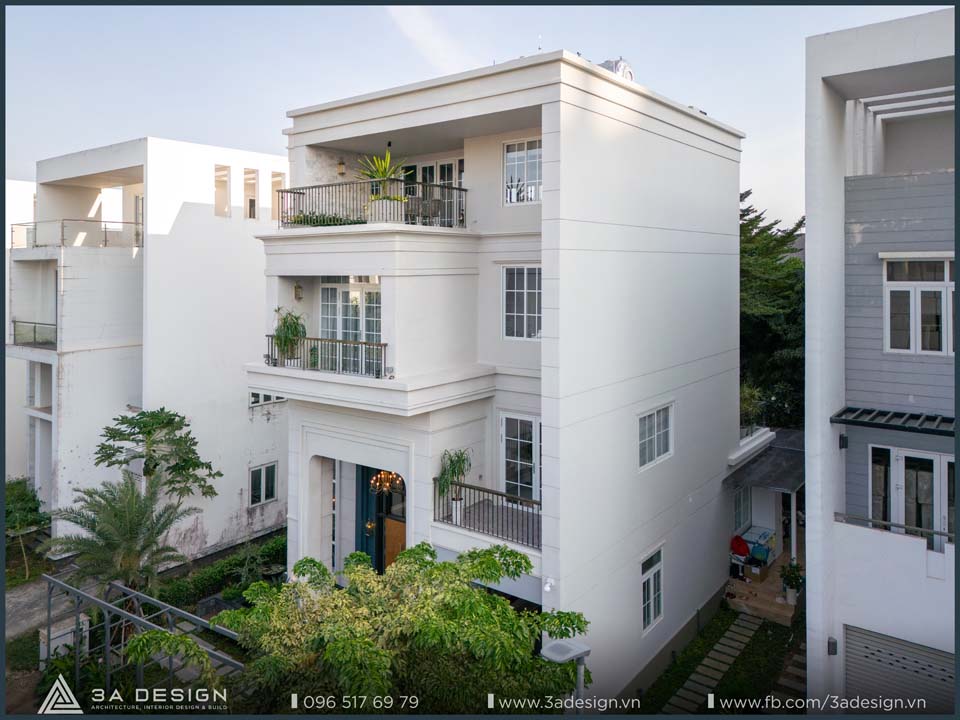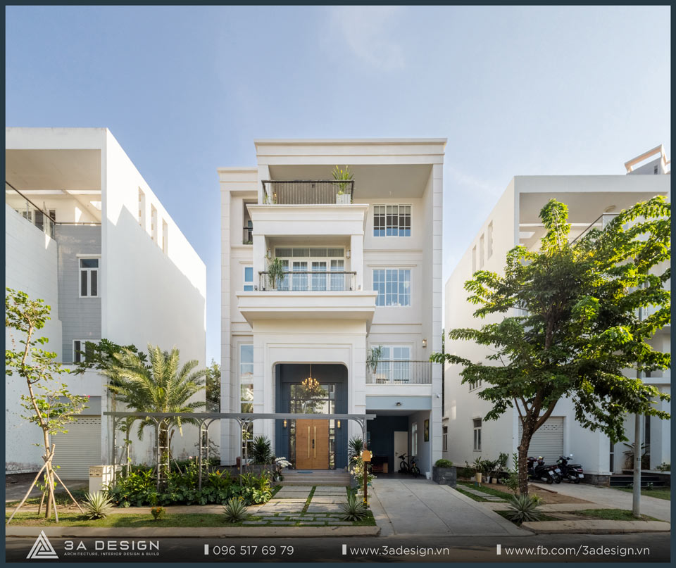 Những đường nét vòm nhẹ nhàng và màu sắc trắng kem tinh khiết của tổng thể kiến trúc tôn lên vẻ đẹp của ngôi nhà. Không chỉ dừng lại ở việc thiết kế bên ngoài, cảnh quan của ngôi nhà cũng được đặc biệt chú trọng. Những lối đi và khoảng không gian đệm được bố trí hài hòa, tạo nên một không gian sống gần gũi với thiên nhiên. Những mảng cây xanh nhiệt đới được bố trí hài hoà và xen kẽ vào kiến trúc, tạo nên một không gian sống vừa châu Âu vừa có tinh thần nhiệt đới gần gũi với thiên nhiên.