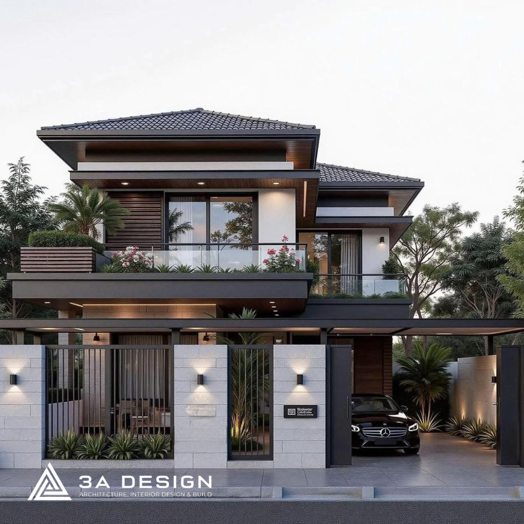 3.4. Mẫu nhà 2 tầng phong cách hiện đại (Mái bằng)
