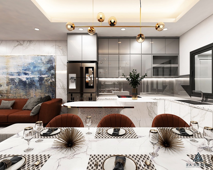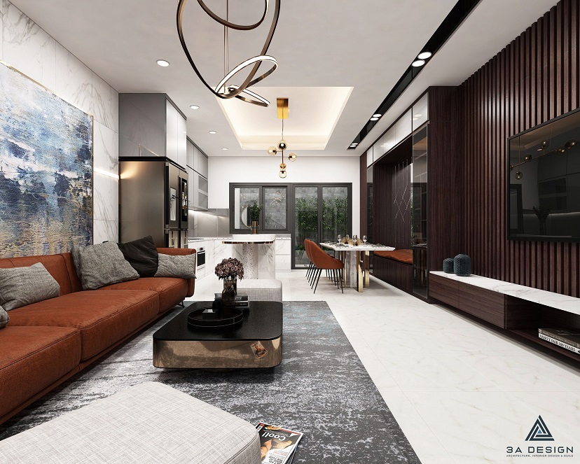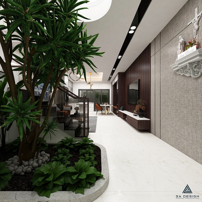 Bước vào bên trong, bạn sẽ bị cuốn hút bởi không gian nội thất sang trọng và tràn đầy ánh sáng tự nhiên. Phòng khách rộng rãi được trang bị đồ nội thất cao cấp, với ghế sofa mềm mại và các chi tiết trang trí tạo điểm nhấn. Cửa chính lớn cho phép ánh sáng tự nhiên lan tỏa và tạo cảm giác ấm áp.