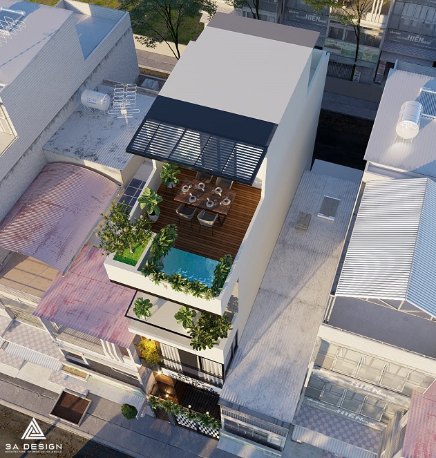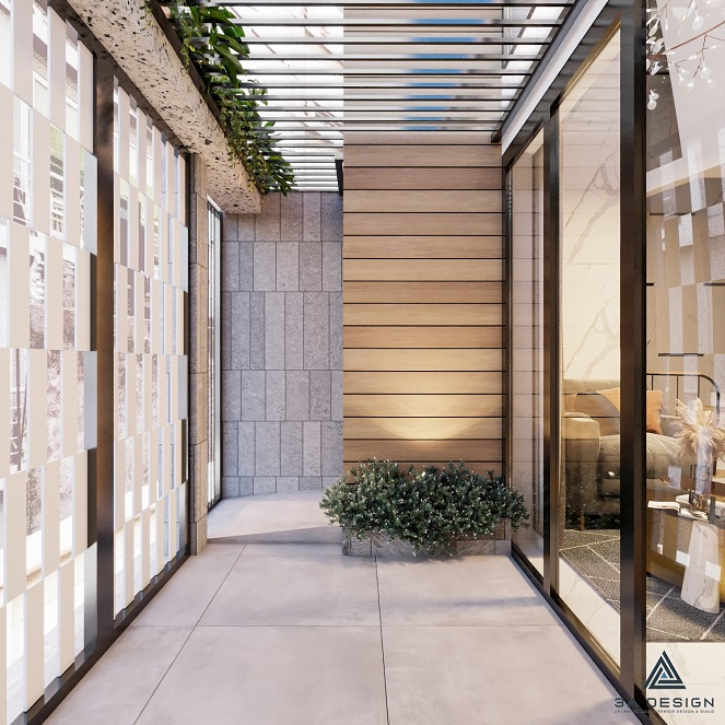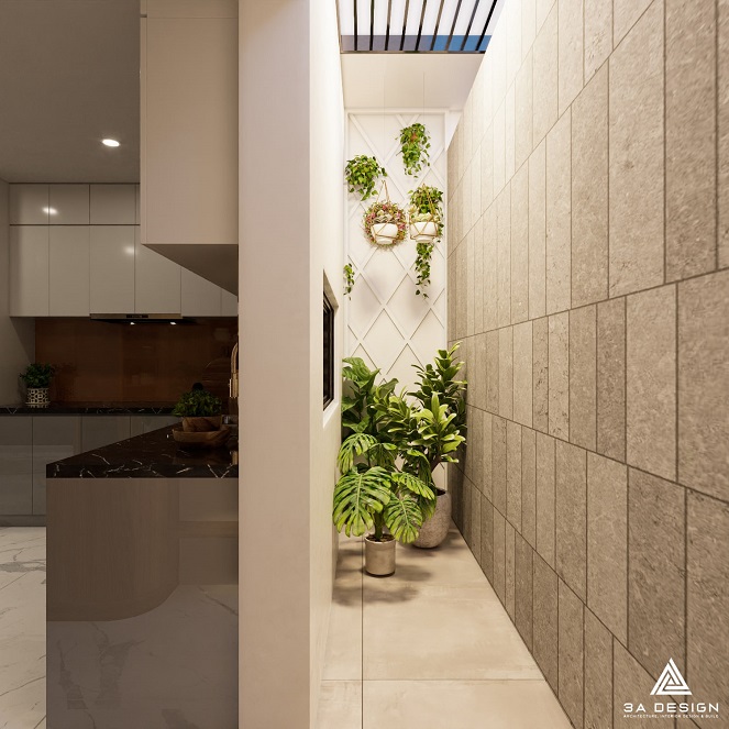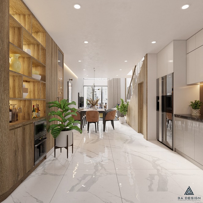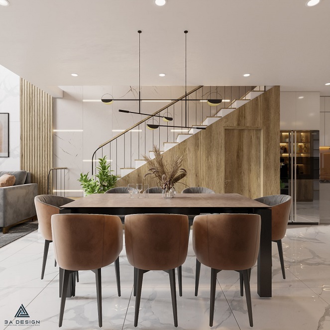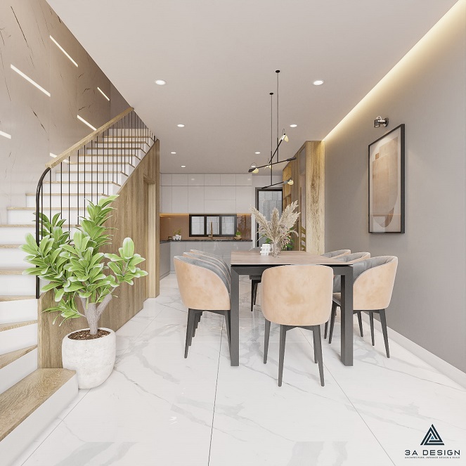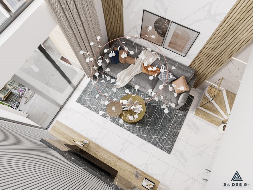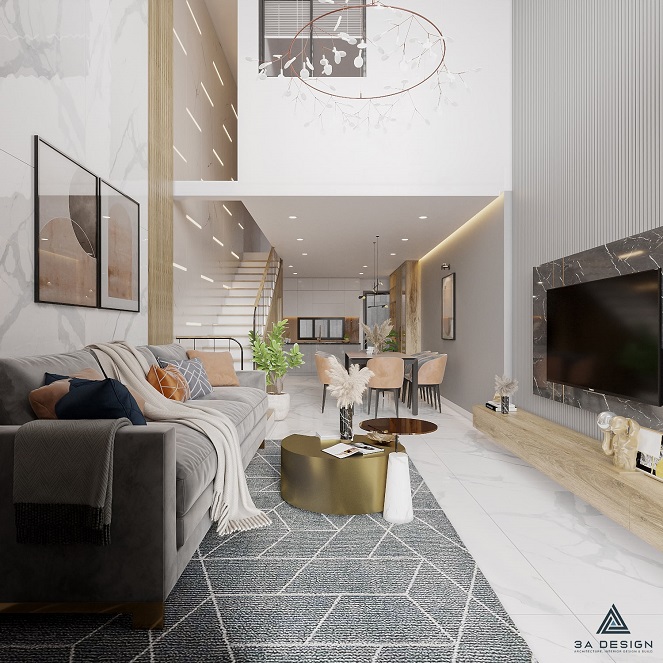 Sự kết hợp giữa khối hình học đơn giản và góc cạnh, bổ sung bởi chiều cao và chiều sâu hài hòa, là điểm đặc biệt nổi bật của ngôi nhà này. Các tầng không gian được kết nối một cách thông thoáng, tạo nên một không gian sống liên kết giữa tầng trệt và các tầng trên. Sự hòa quyện giữa ánh sáng tự nhiên và không gian mở tạo nên cảm giác thoải mái và tạo nên một môi trường sống thú vị.