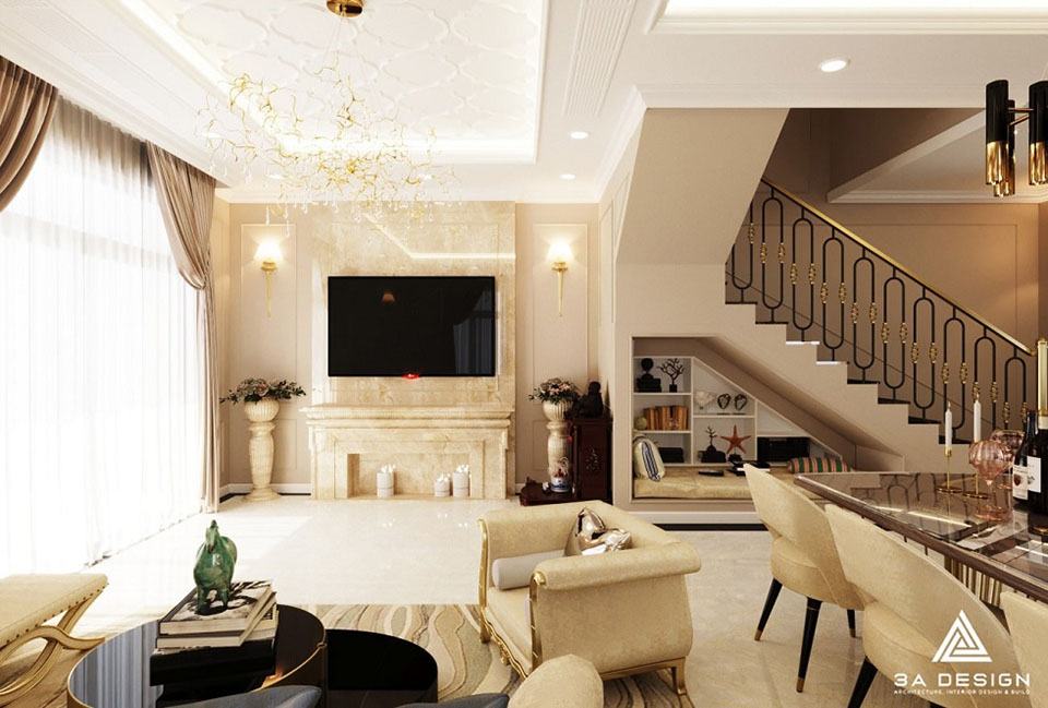 Nội thất tân cổ điển mang đến không gian ấm áp, quý phái và đầy phần cá nhân, tạo nên một môi trường sống lý tưởng cho những người yêu thích sự hòa quyện giữa quá khứ và hiện đại.