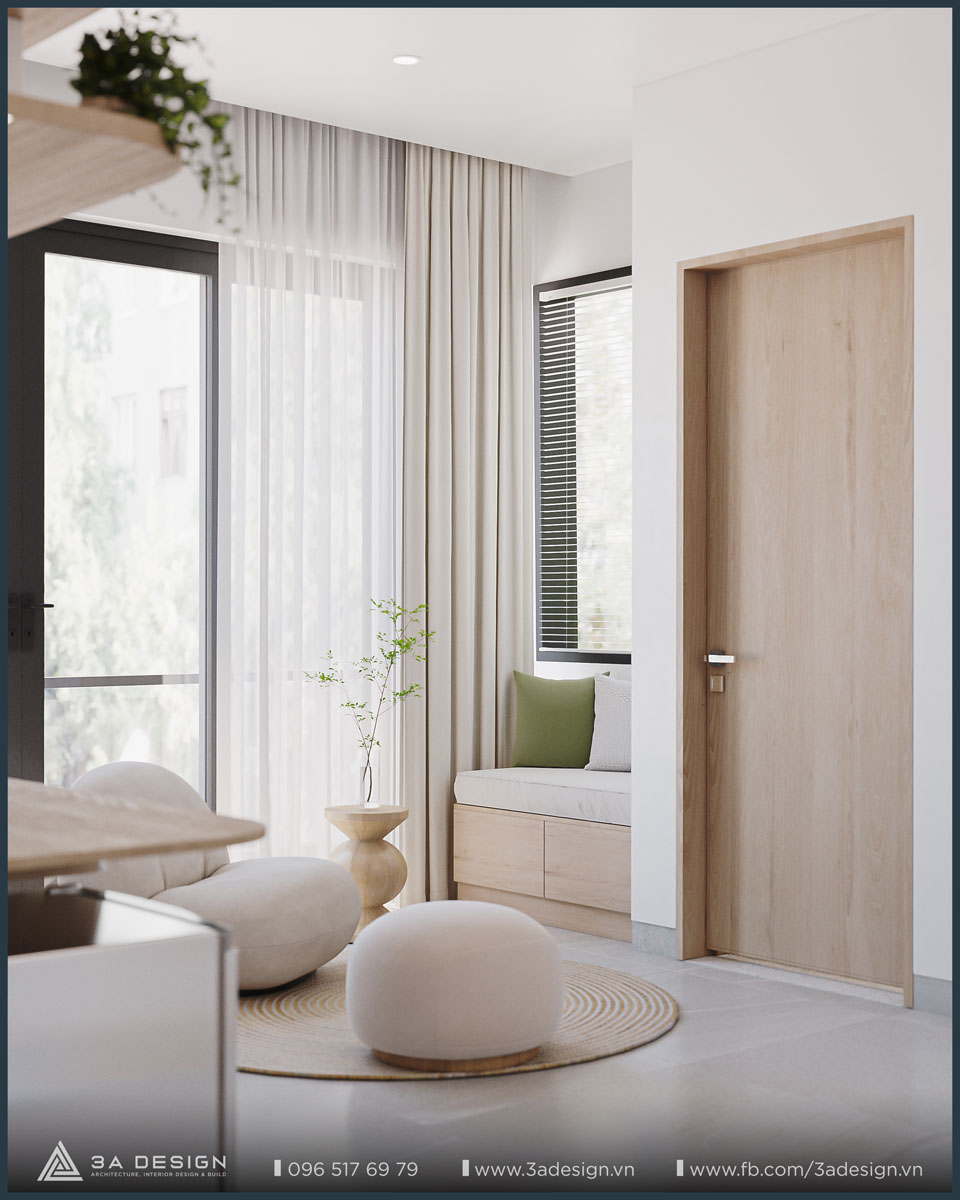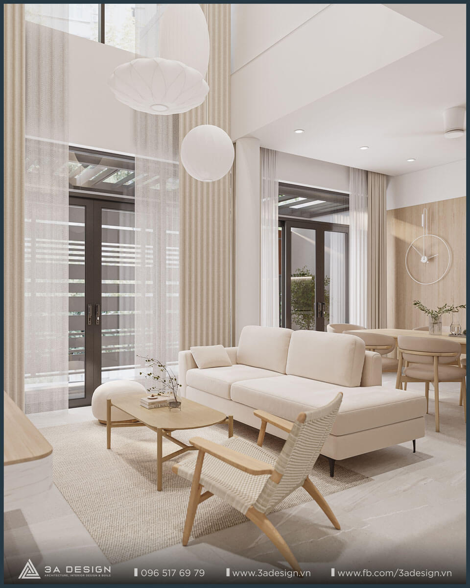 L House với phong cách thiết kế Minimalism và Japandi được 3A Design tạo nên, đặc trưng bởi sự độc đáo và sáng tạo trong kiến trúc. Các hình khối vững chắc được sắp xếp hài hòa, kết hợp với tone màu trắng sáng làm chủ đạo, tạo nên không gian tinh tế và sang trọng, thể hiện tính cá nhân và đẳng cấp riêng biệt của gia chủ.
