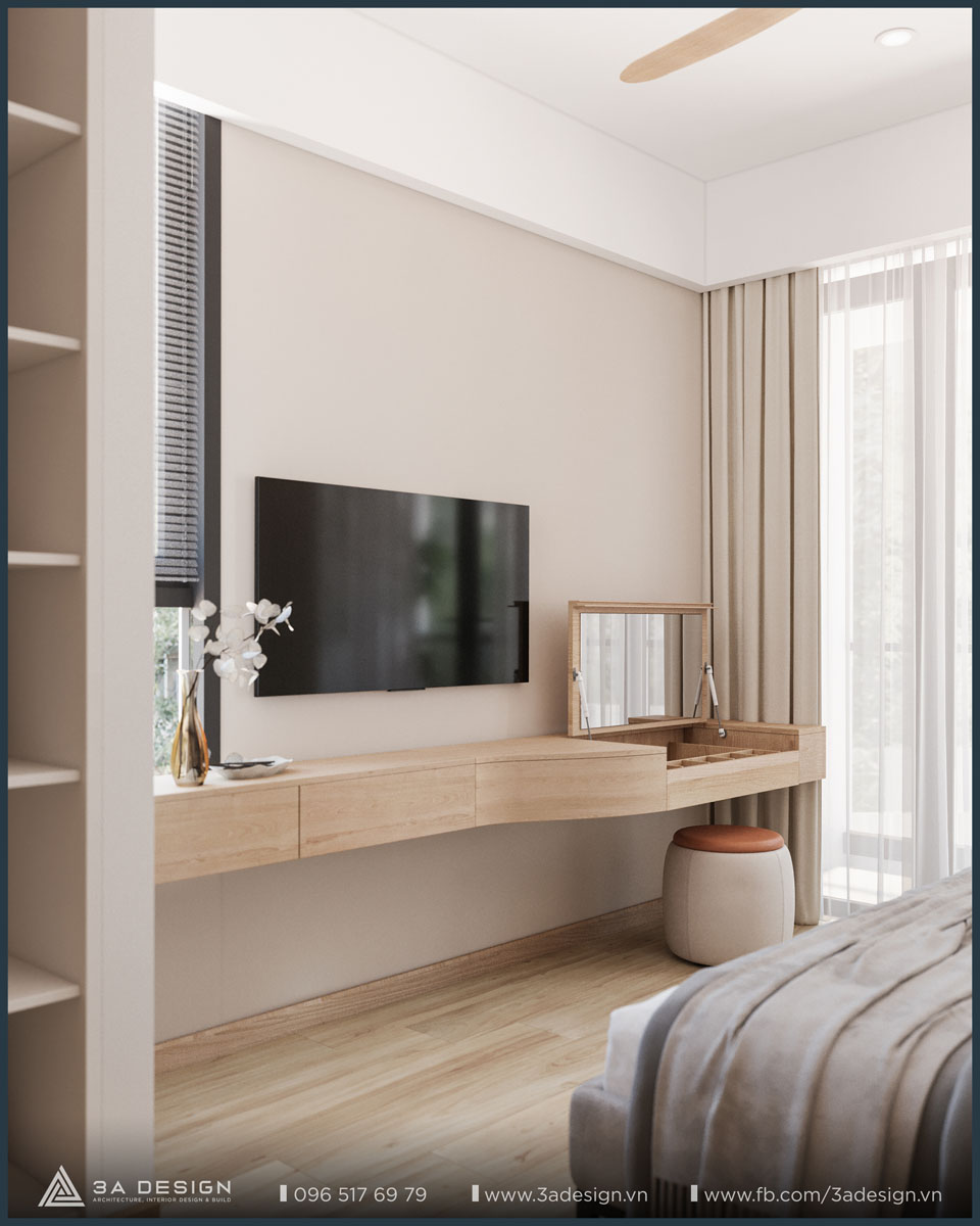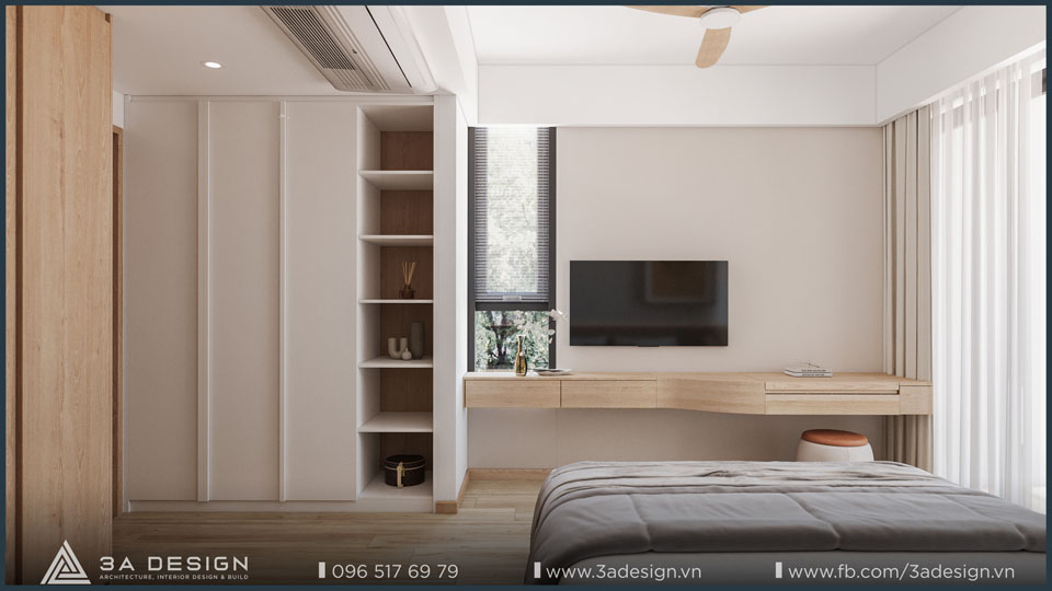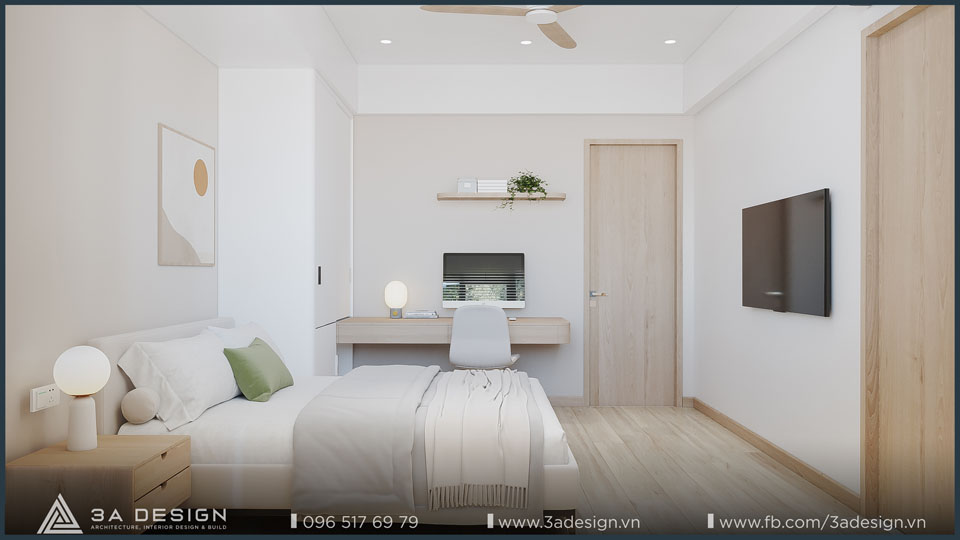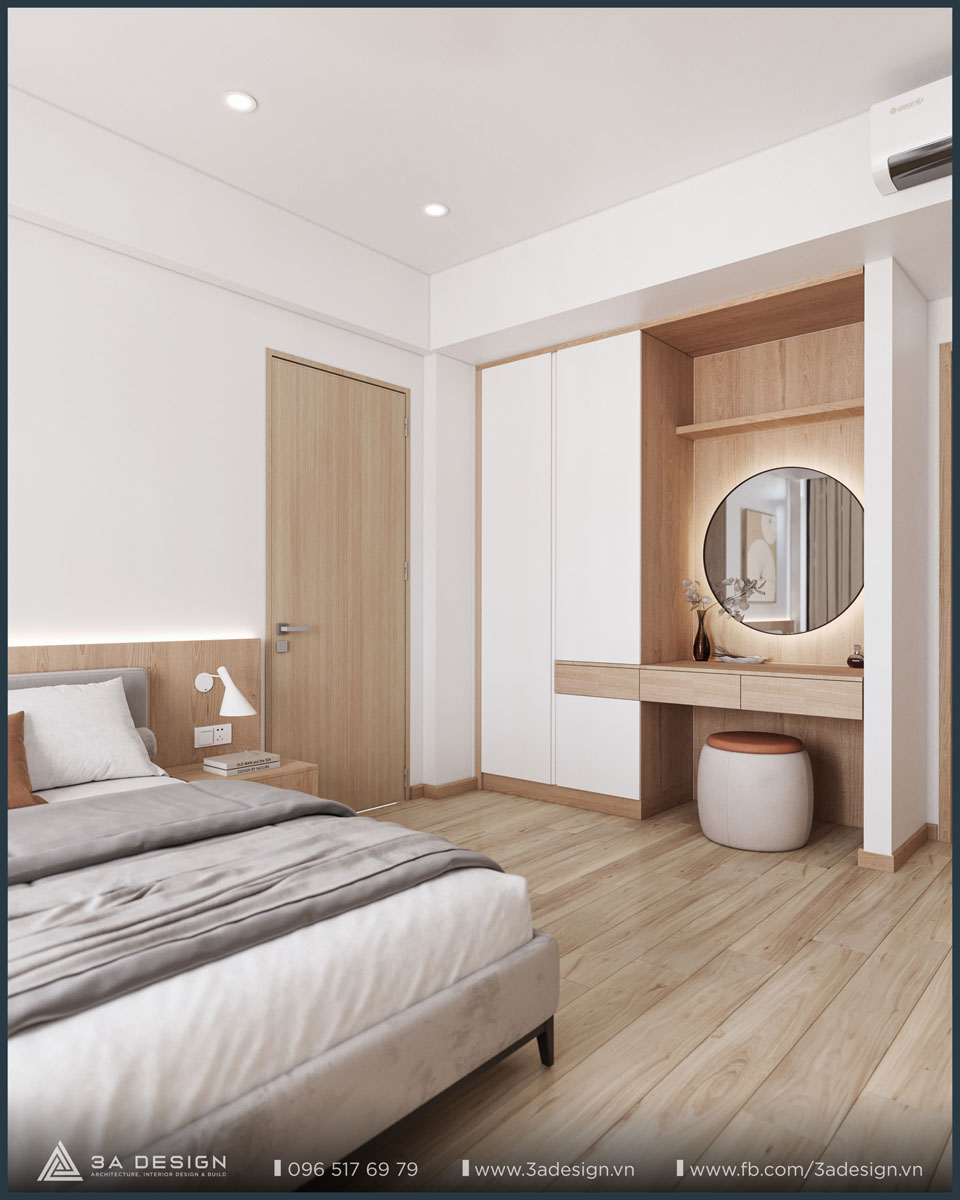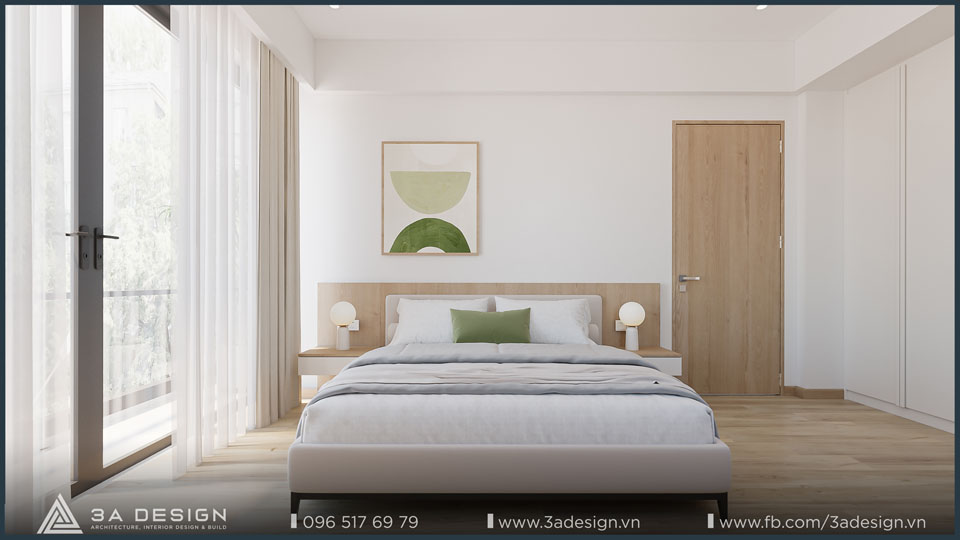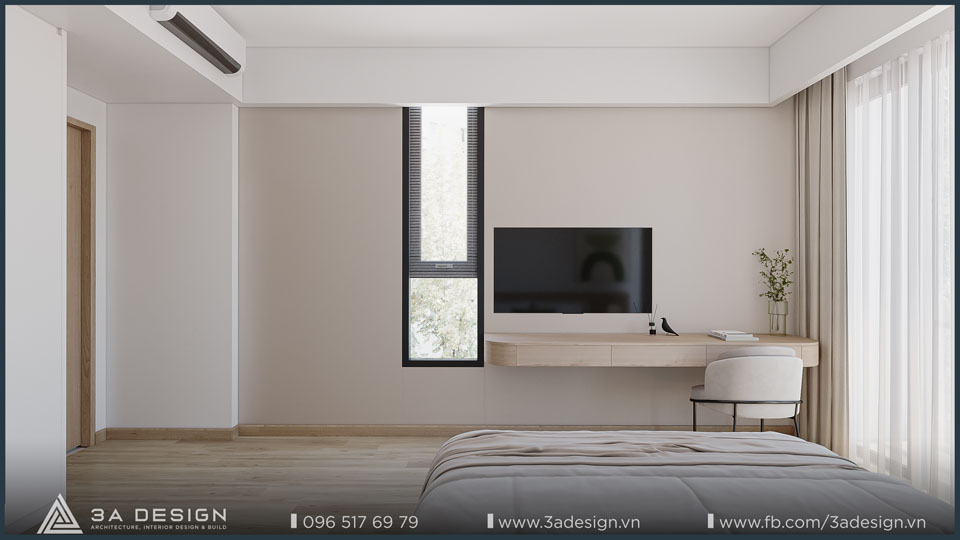 Nội thất phòng ngủ vẫn hướng đến sự đơn giản trong bài trí và lựa chọn các sản phẩm nội thất, không quá cầu kỳ nhưng vẫn đảm bảo tiện nghi và tính thẩm mỹ cho không gian. Thiết kế sử dụng Panel gỗ được hắt Led và tranh nhấn điều này giúp tạo nên một không gian thư giản thoải mái và ấm áp.