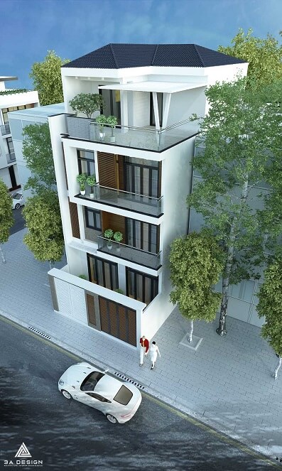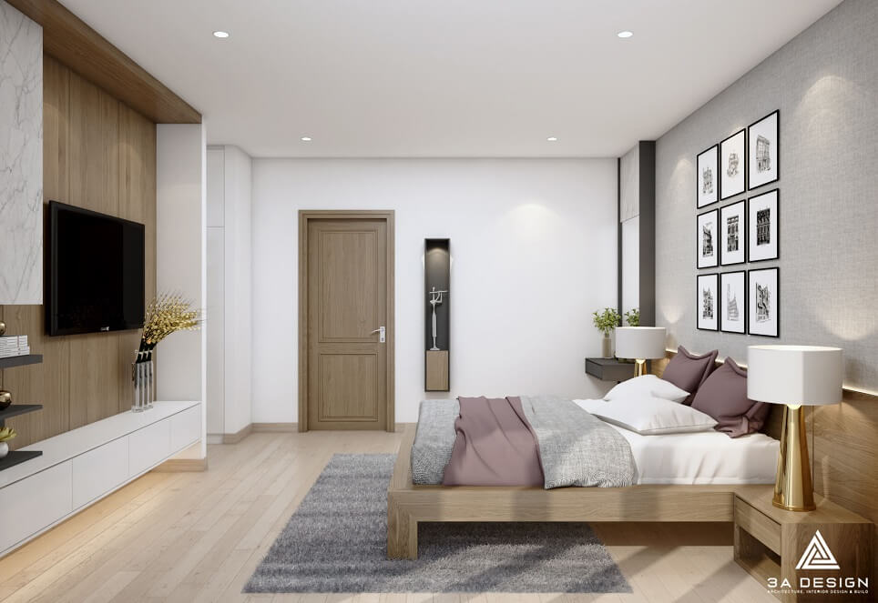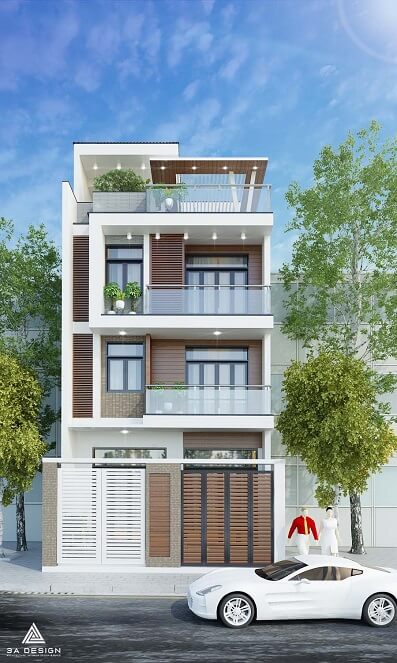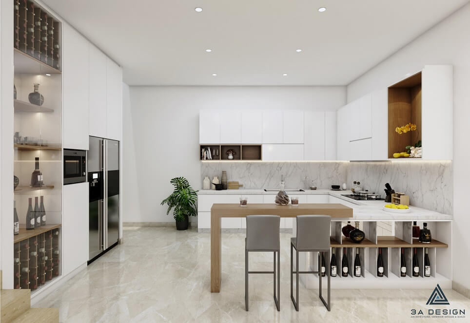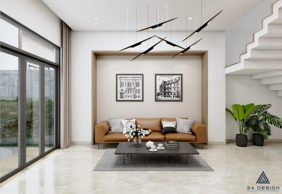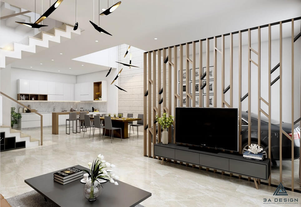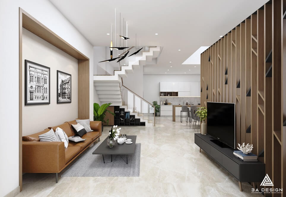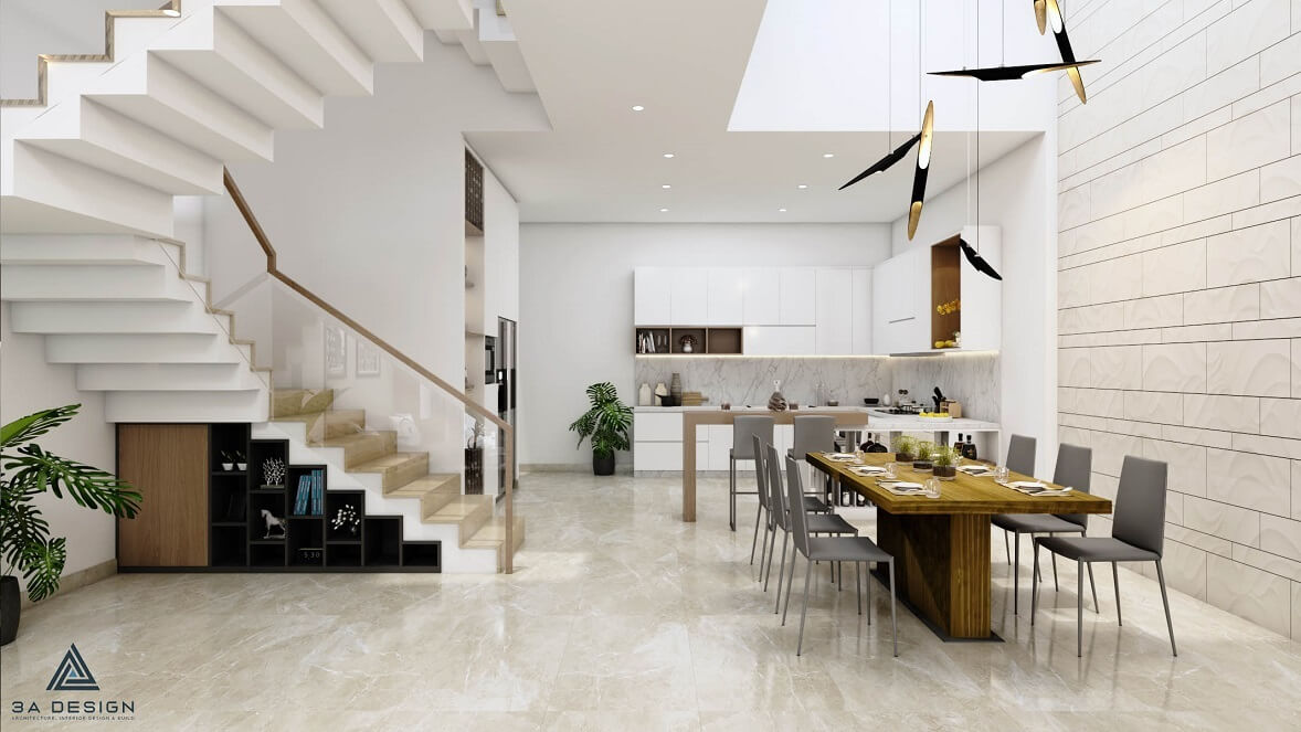 Căn nhà phố được thiết kế với phong cách kiến trúc hiện đại và sự tối giản, mang đến không gian sống tiện nghi và thoải mái cho gia đình. Tông màu chủ đạo của ngôi nhà là trắng kết hợp với gỗ sáng, tạo nên sự hài hòa và tạo cảm giác sạch sẽ và ấm cúng.