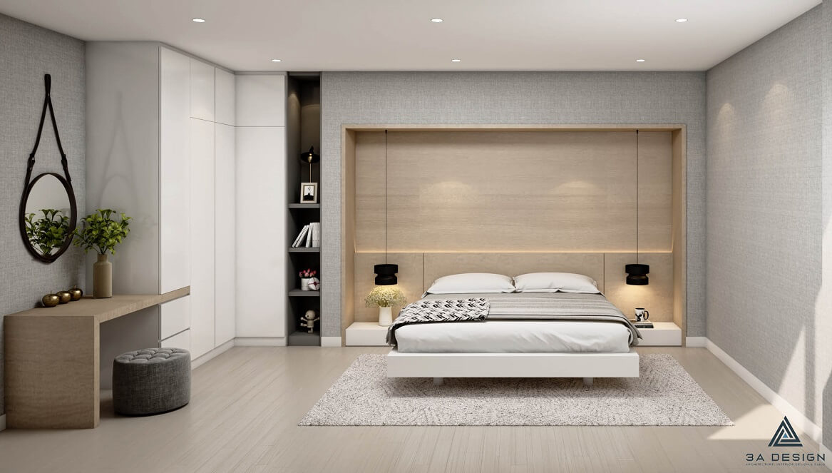 Nội thất được lựa chọn với sự tối giản, với các đồ nội thất được chọn kỹ lưỡng và tối giản về thiết kế. Phòng ngủ và phòng tắm được thiết kế với sự tiện nghi và thoải mái, với tông màu trắng tạo cảm giác sạch sẽ và tươi sáng.