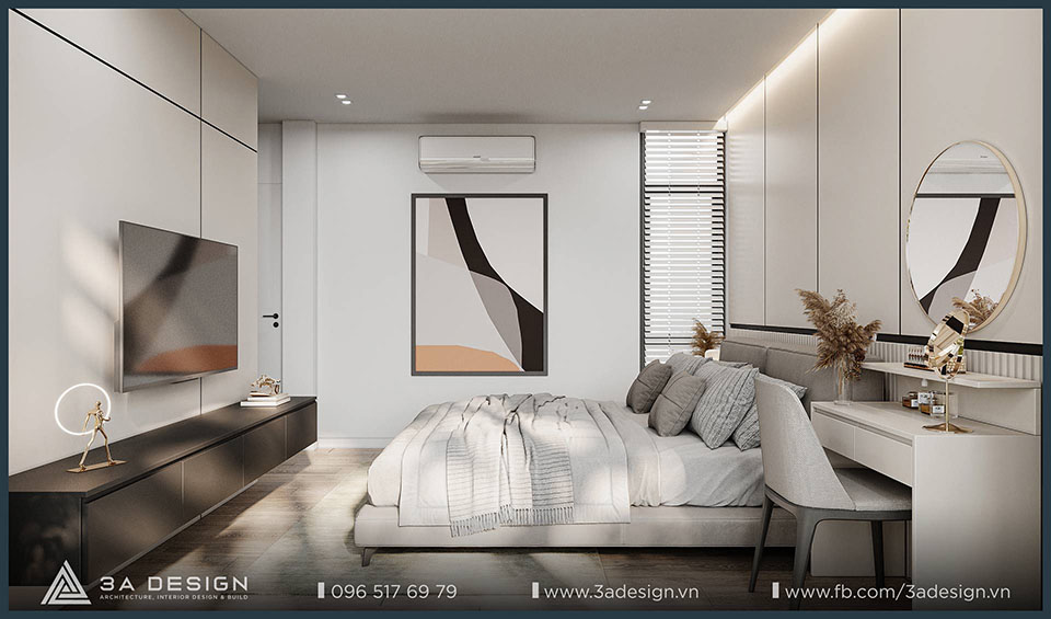 Bước vào phòng ngủ của D House, bạn sẽ cảm nhận ngay được không gian ấm áp và nhẹ nhàng. Tone màu trung tính làm chủ đạo, làm tăng thêm sự thoải mái và tinh tế cho không gian. Một chiếc giường lớn và thoải mái đặt giữa phòng, được trải bộ chăn ga gối mềm mại, tạo nên điểm nhấn đáng chú ý. Phòng ngủ của D House được bố trí khá thông thoáng. Với một số đồ trang trí nhẹ nhàng và đơn giản tạo nên sự hài hòa và tinh tế cho không gian. Nếu bạn đang tìm kiếm một không gian ngủ yên tĩnh và thoải mái.