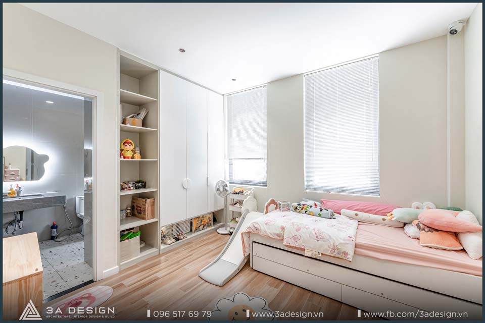 - Lầu 1 (Tầng 2): Phòng ngủ 2, phòng ngủ 3, WC chung, phòng ngủ 4 + WC.
