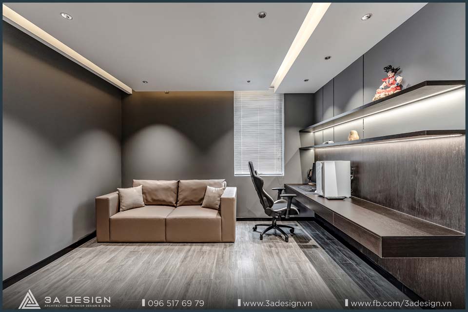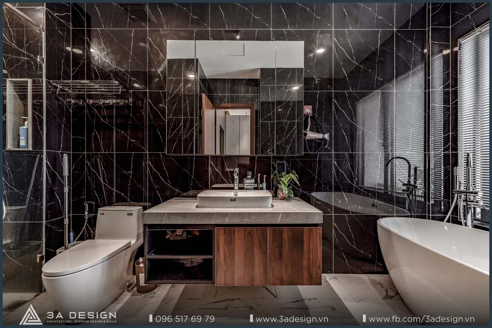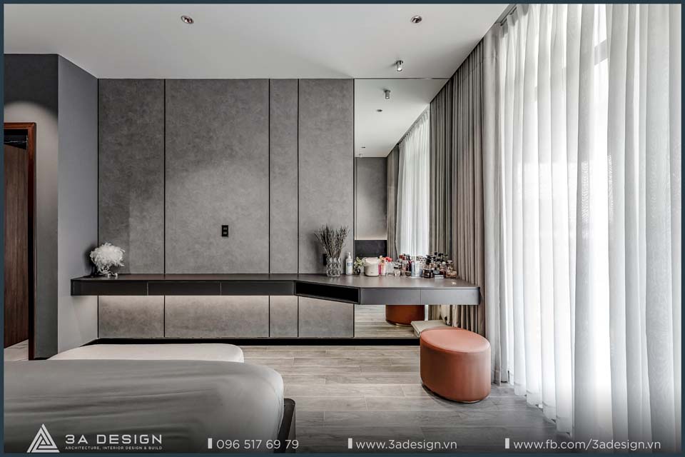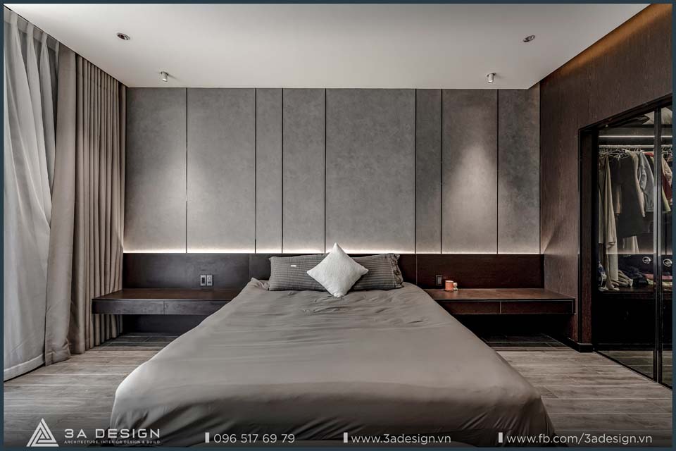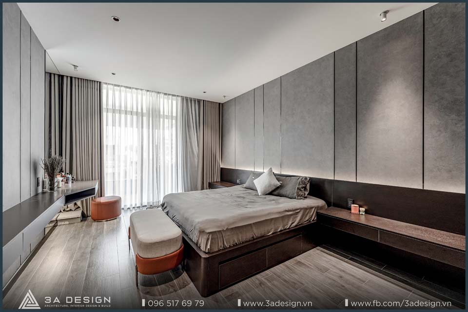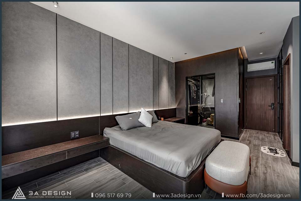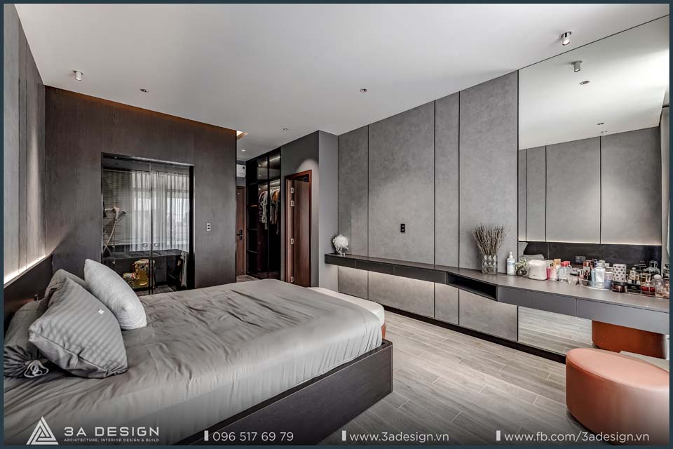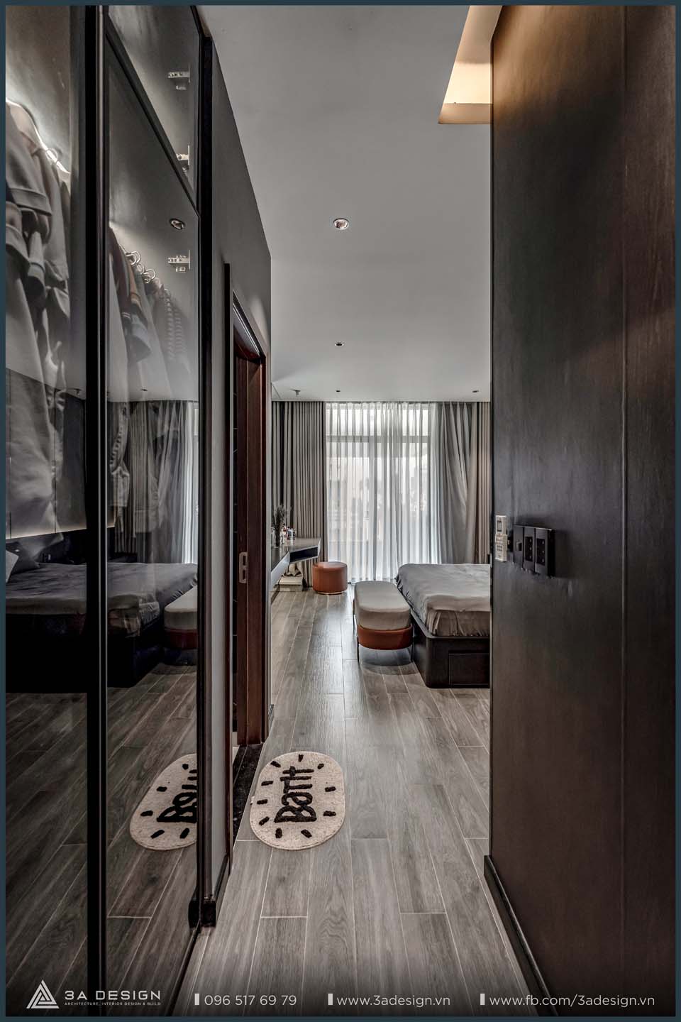 Phòng ngủ master được thiết kế sang trọng với tone màu tối tương phản. Phòng thay đồ riêng biệt, tinh tế giúp tối ưu hóa không gian.
