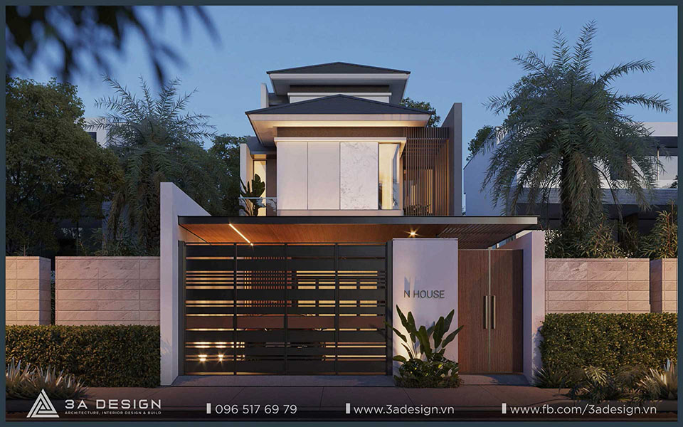 Mặt tiền hiện đại của N House phản ánh sự tươi mới và hiện đại trong kiến trúc. Các đường nét thanh lịch, tường kính rộng và viền cửa sổ tạo ra một cảm giác rộng rãi và thoáng đãng. Những tấm kính lớn không chỉ cho phép ánh sáng tự nhiên len vào mỗi góc của căn nhà mà còn tạo ra một sự kết nối hài hòa giữa bên trong và bên ngoài.