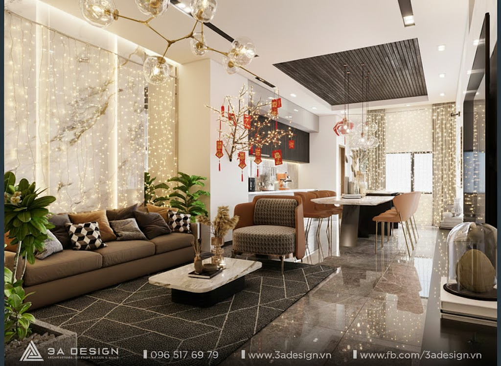 3A Design cung cấp giải pháp Thiết kế & Xây dựng Trọn Gói, tích hợp chuyên môn tư vấn phong thủy ngay từ bản vẽ. Đội ngũ của chúng tôi cam kết mọirang Trí Phòng Khách Đón Tết chi tiết, từ bố cục tổng thể đến cách chọn màu sắc decor, đều mang lại hiệu quả thẩm mỹ, công năng và phong thủy tốt nhất. Chúng tôi mang đến ngôi nhà không chỉ đẹp, tối ưu công năng, mà còn đảm bảo sự Thịnh Vượng và An Tâm tuyệt đối.