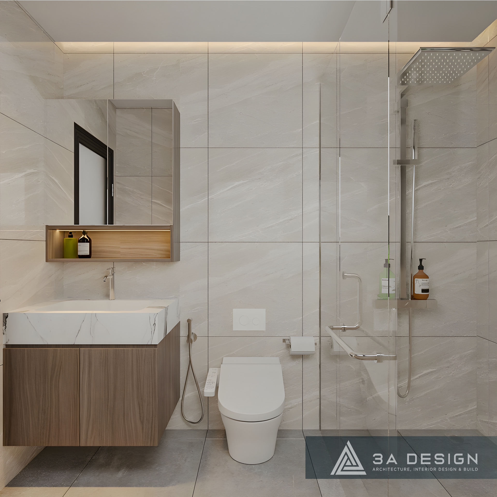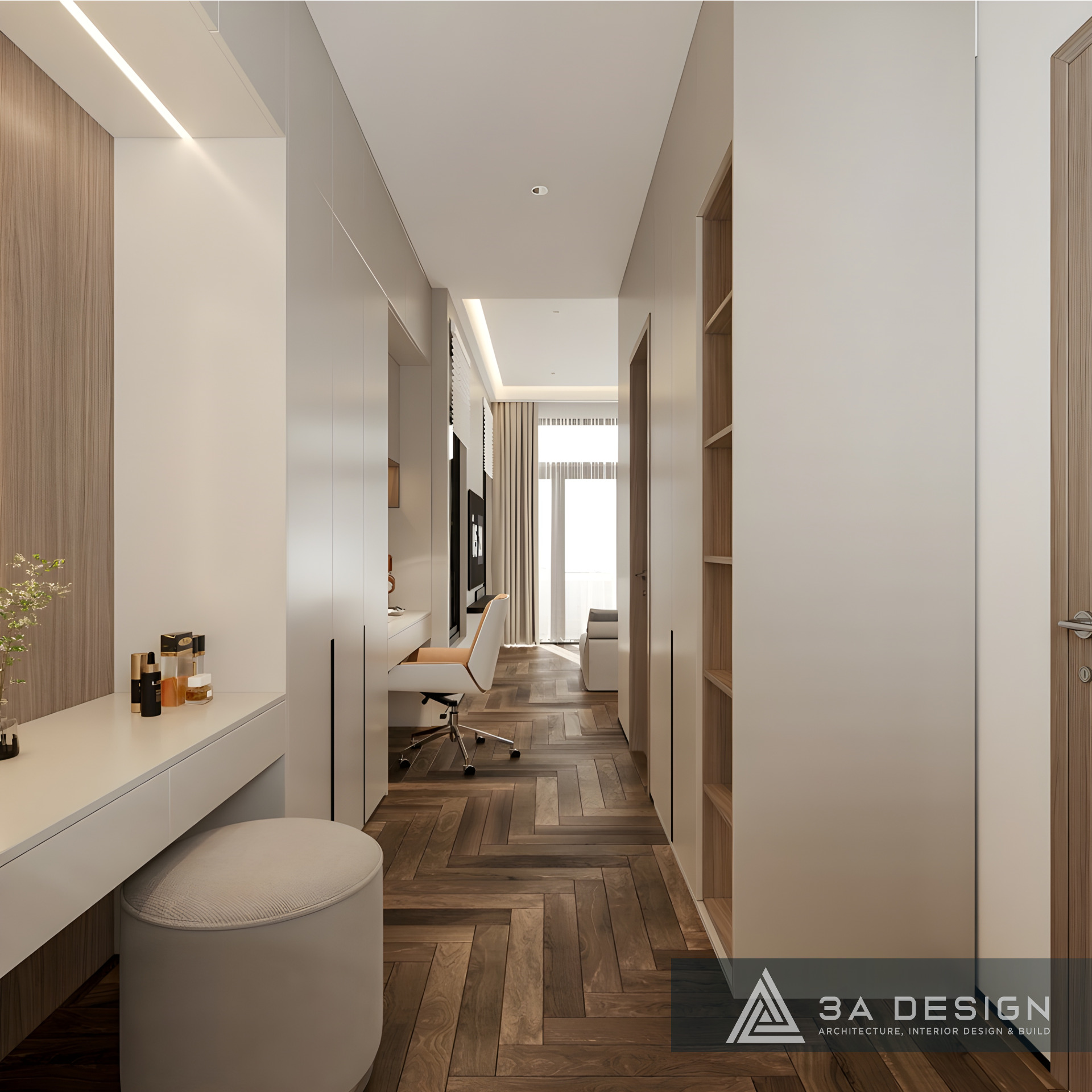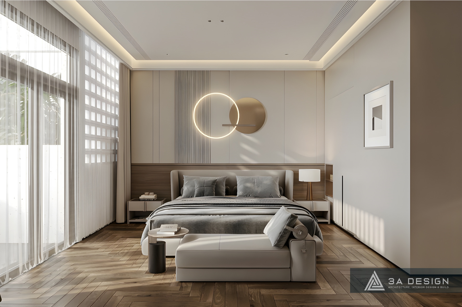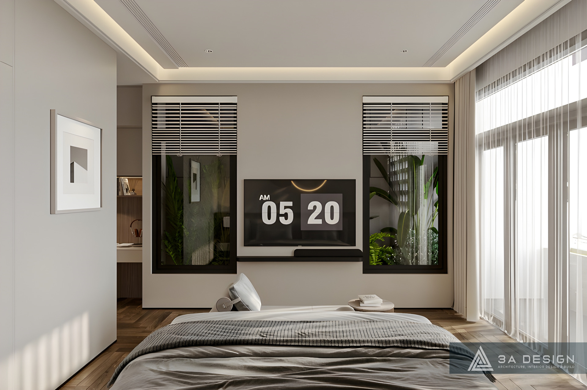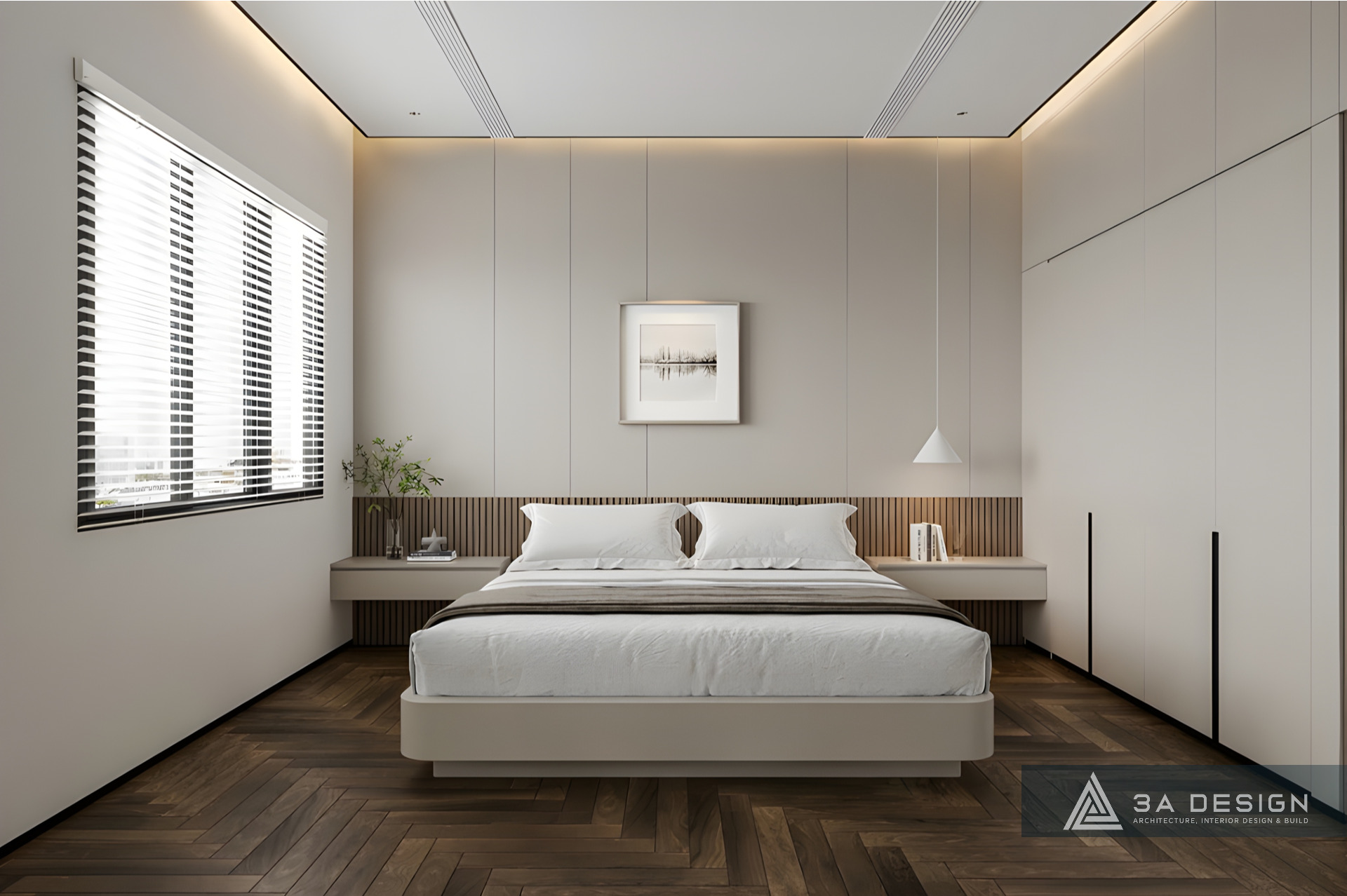 • Điểm Nhấn Ấm Áp: Kết hợp với các mảng gỗ vân trầm ấm áp. Sự hòa quyện giữa gam màu nền nhẹ nhàng và các chi tiết gỗ tạo nên một không gian sống thanh lịch, hiện đại nhưng không kém phần ấm cúng.